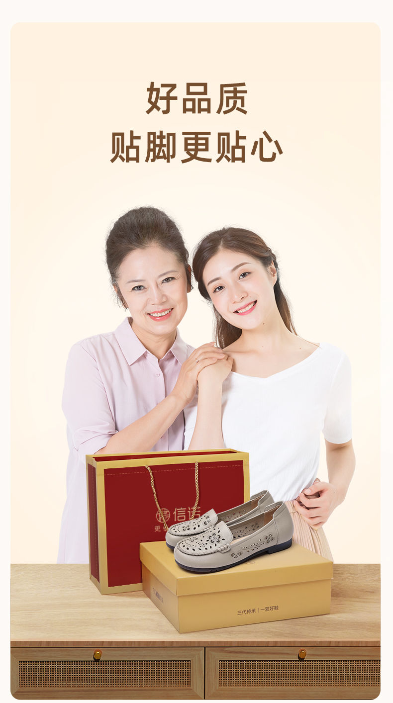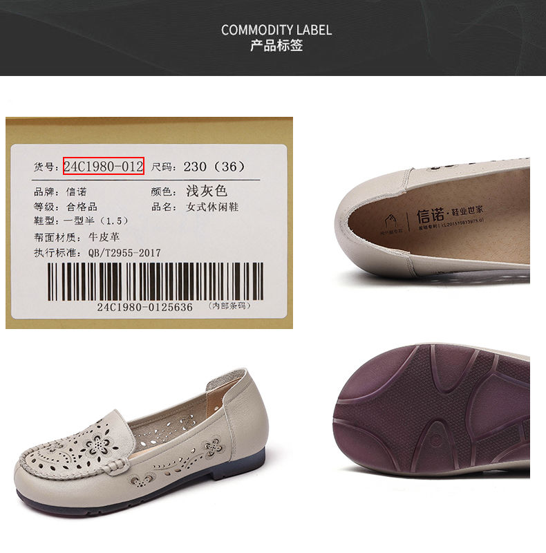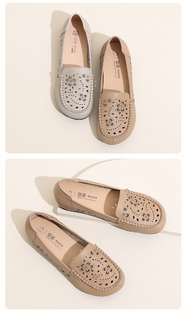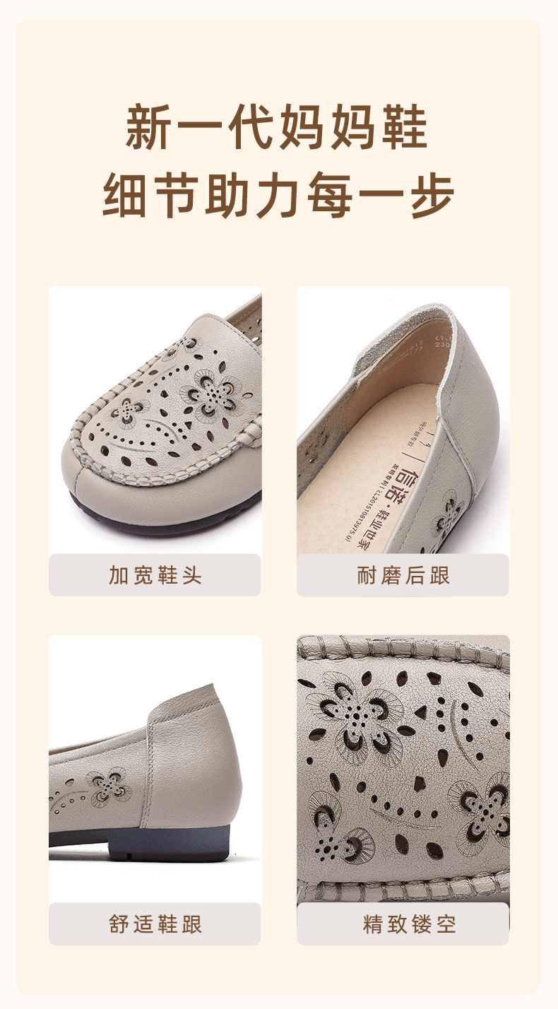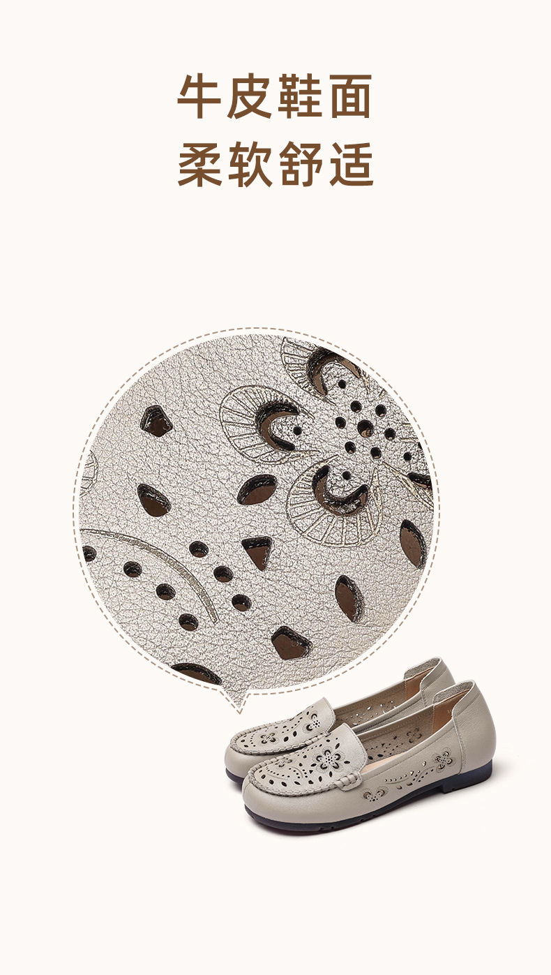 信诺 真皮透气女鞋 2024新款夏季镂空单鞋妈妈鞋软底中老年人凉鞋24C1980-012