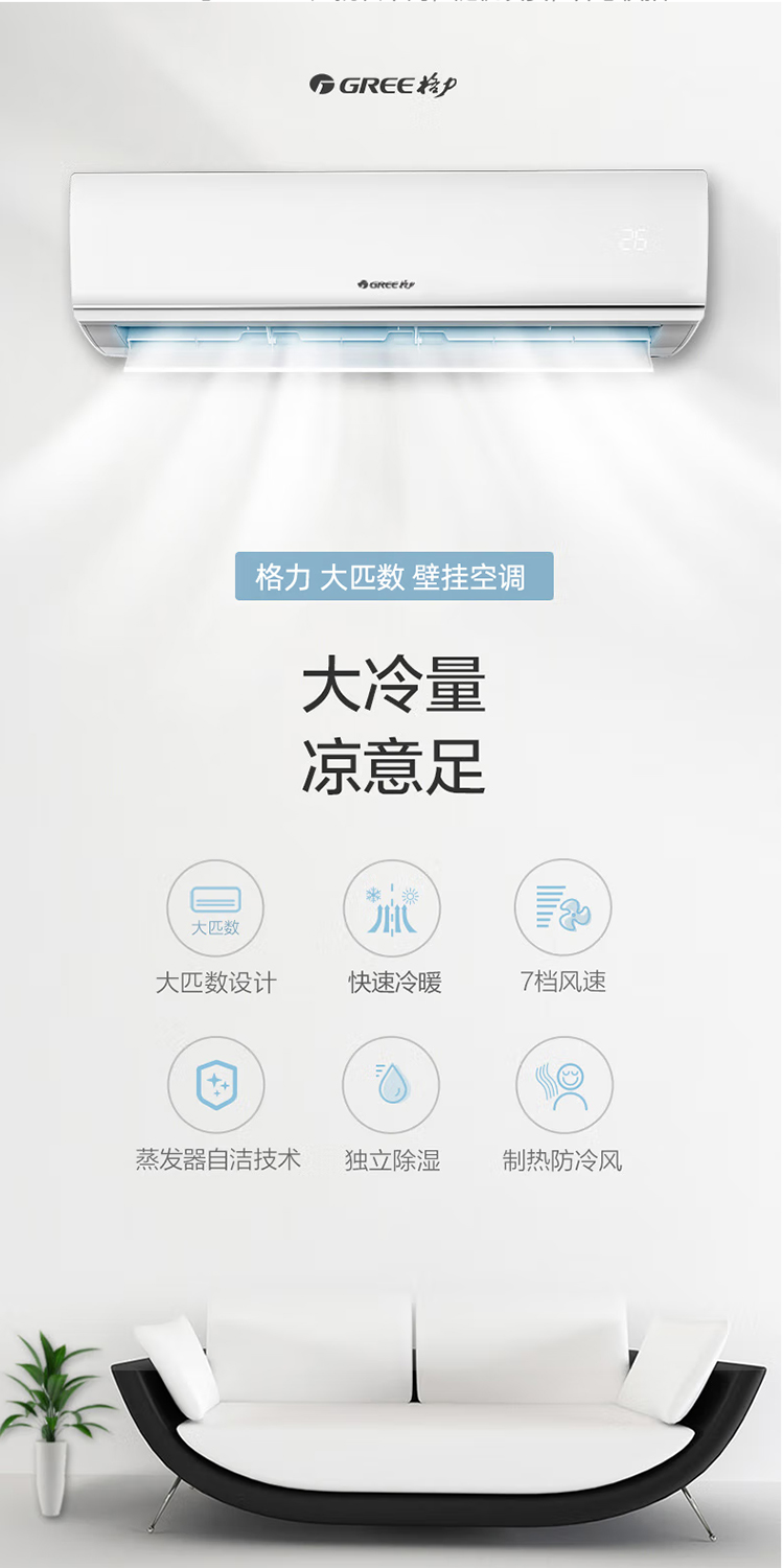 【拍定金享绿色节能补贴 云闪付到手价5399元】格力清巧风变频冷暖2级能效挂机空调 自清洁 大风量客厅用 2匹