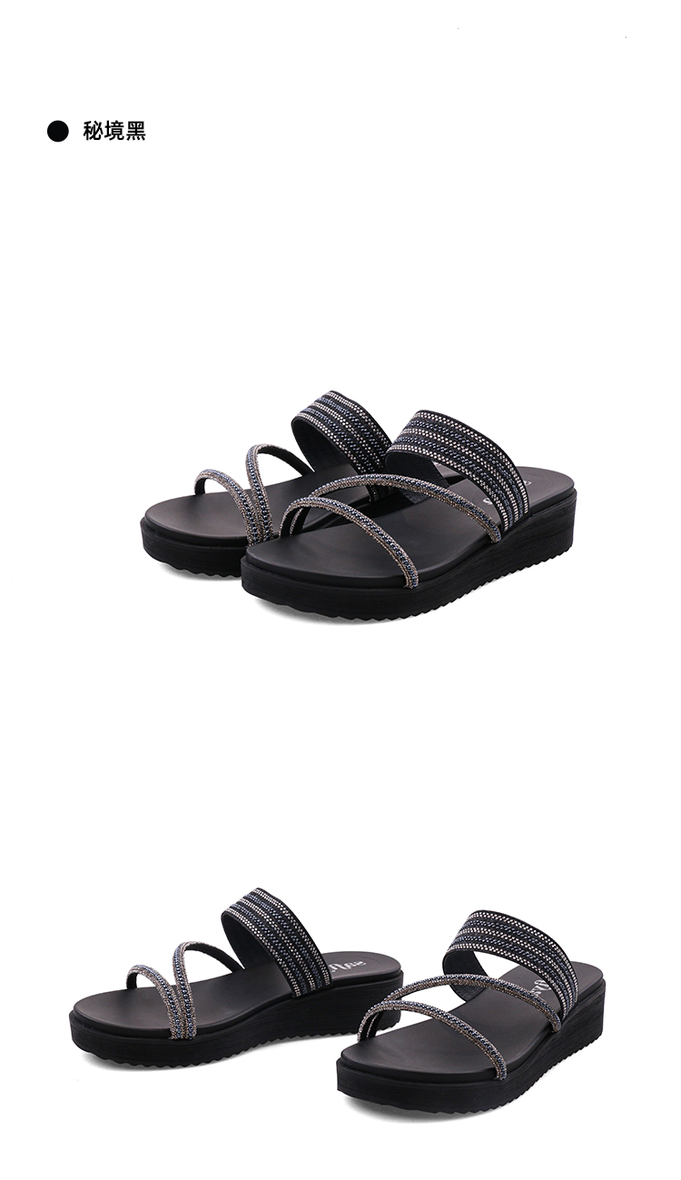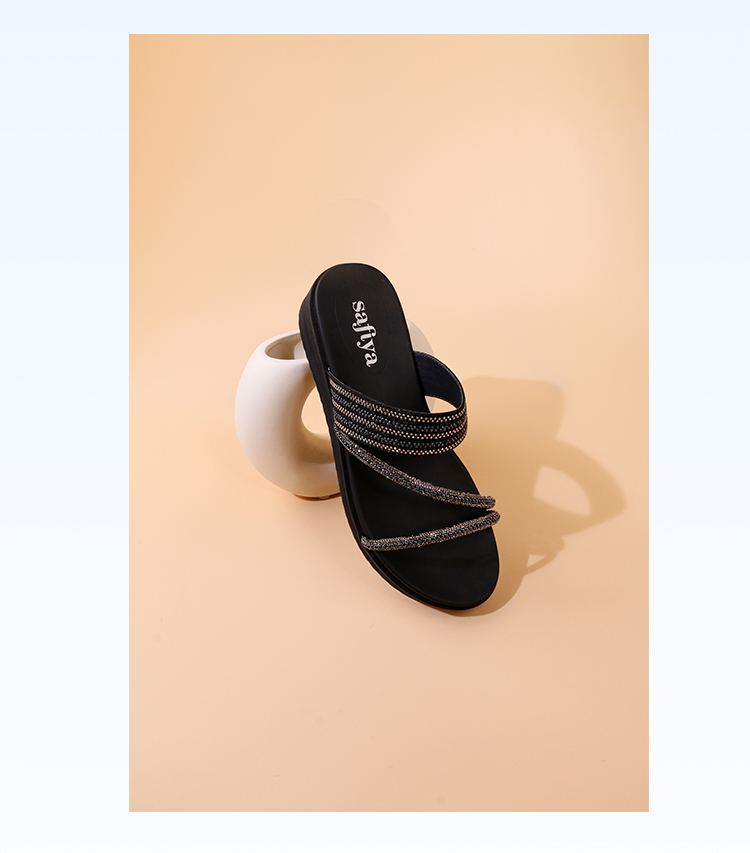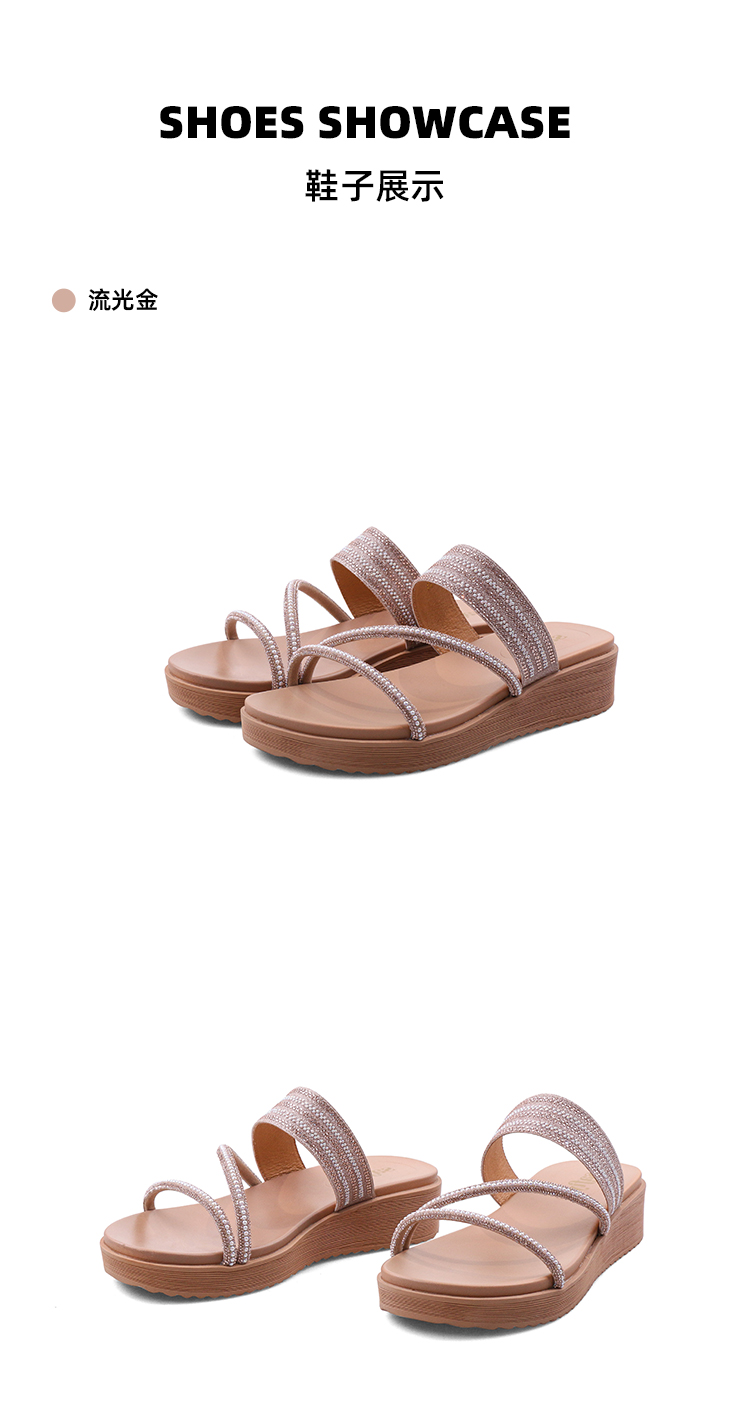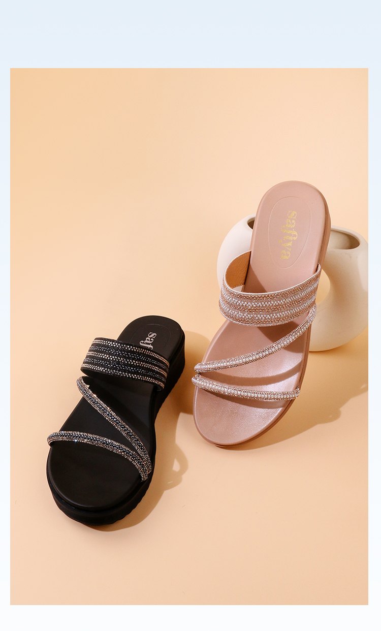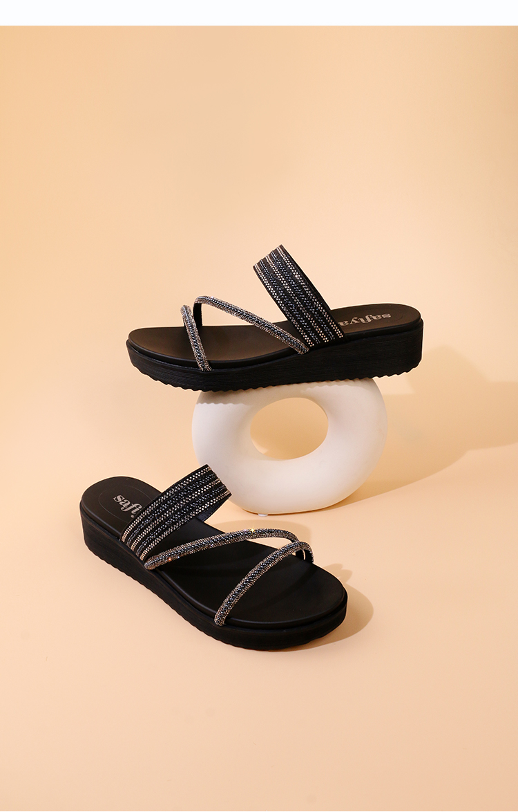 Safiya/索菲娅2023夏季新品仙女风珍珠钻带坡跟气质休闲拖鞋SF32110043