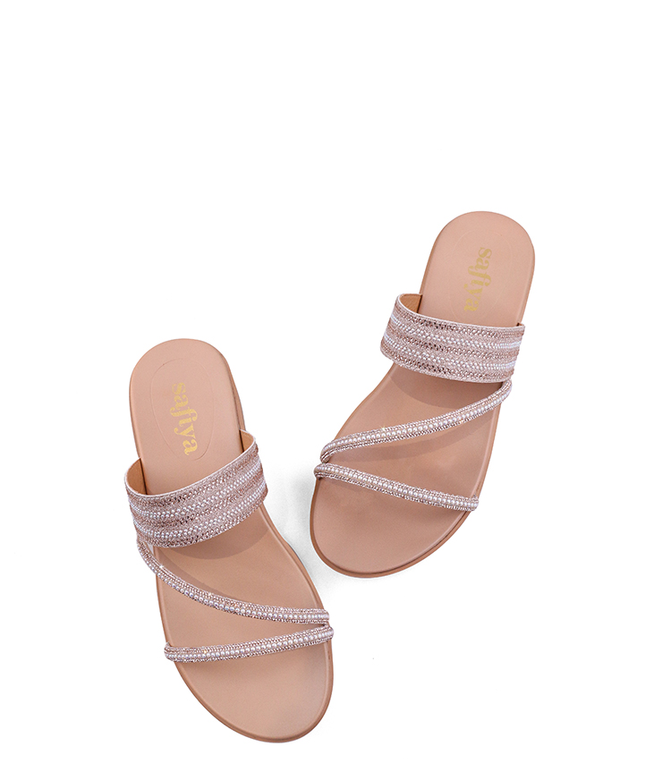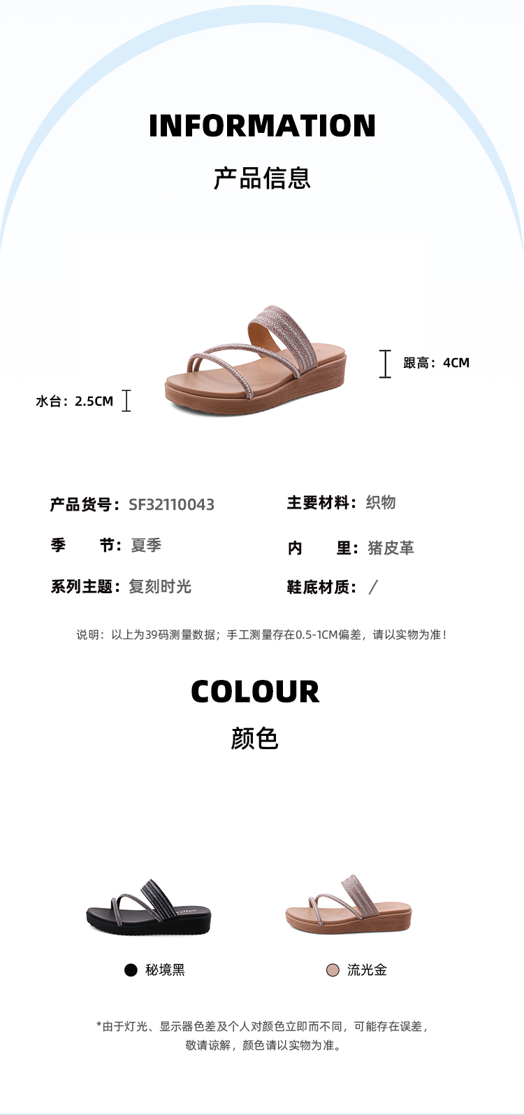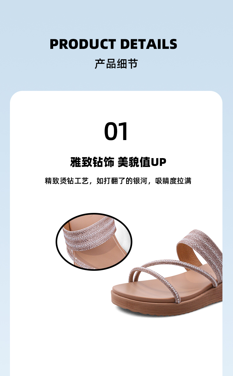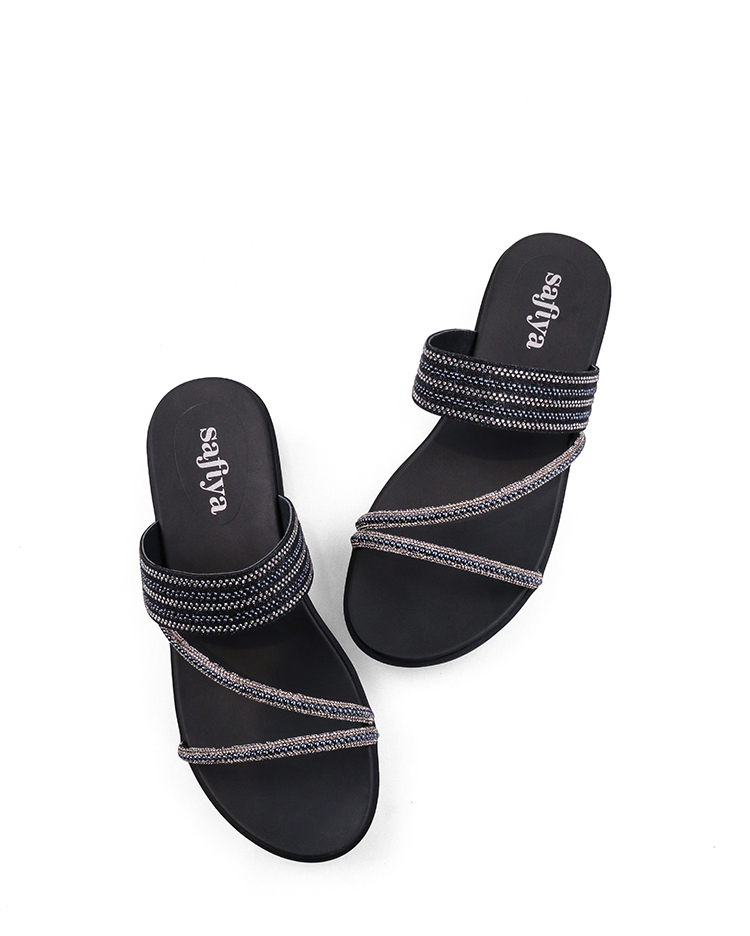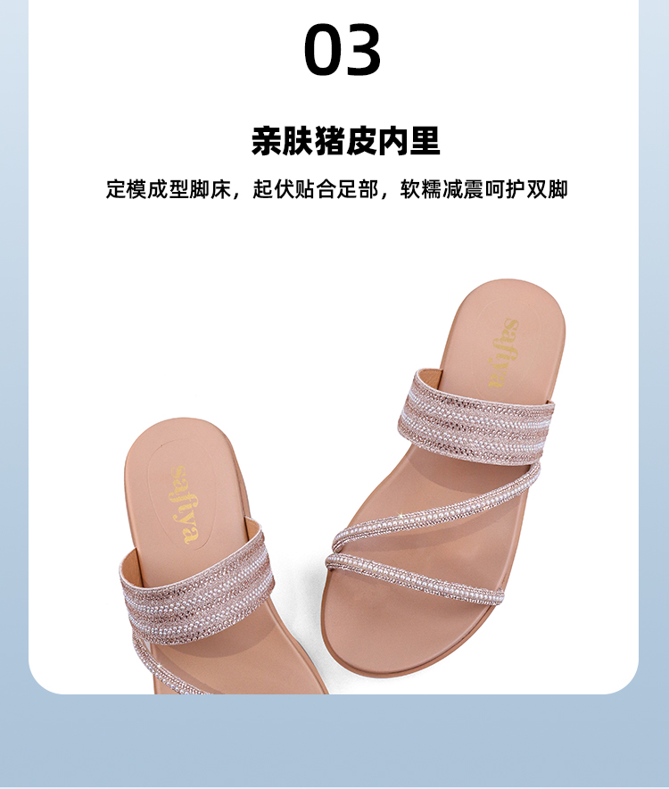 Safiya/索菲娅2023夏季新品仙女风珍珠钻带坡跟气质休闲拖鞋SF32110043