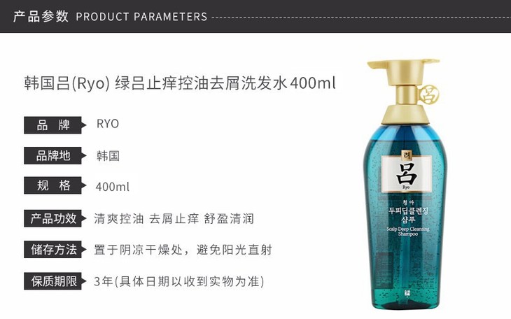 RYOE/吕 绿吕 舒盈清润去头屑洗发水 400ML保税JPY带授权招加盟代理