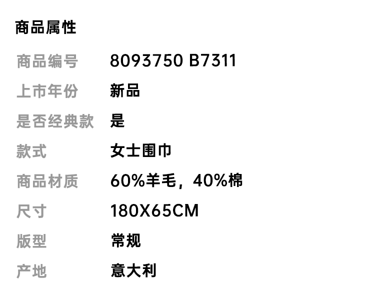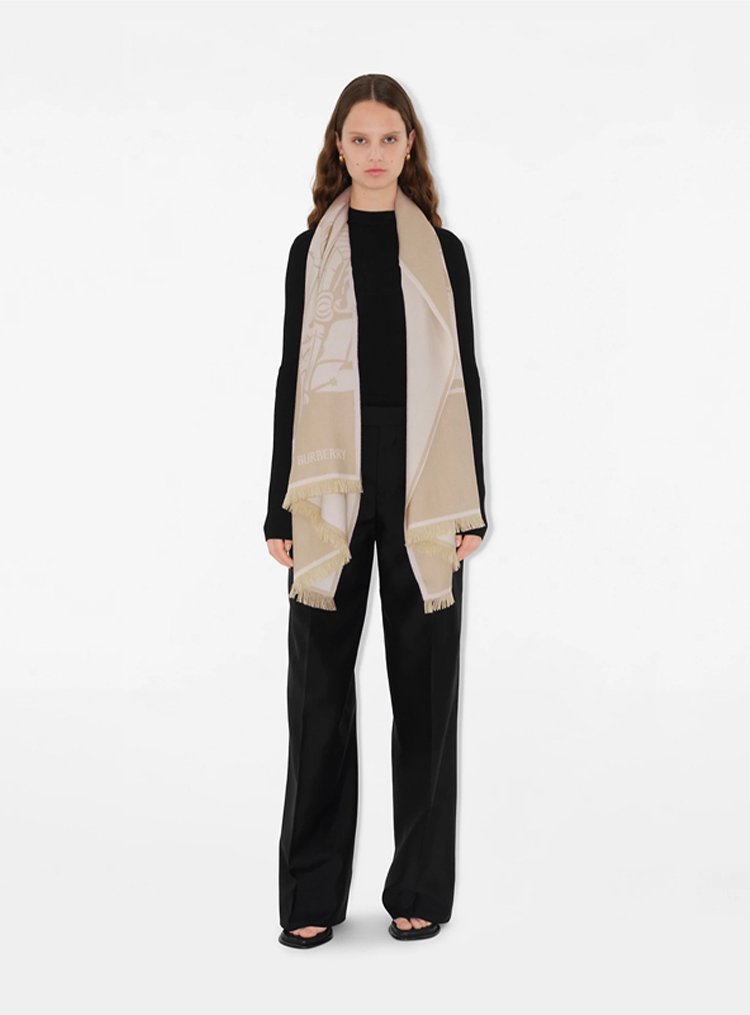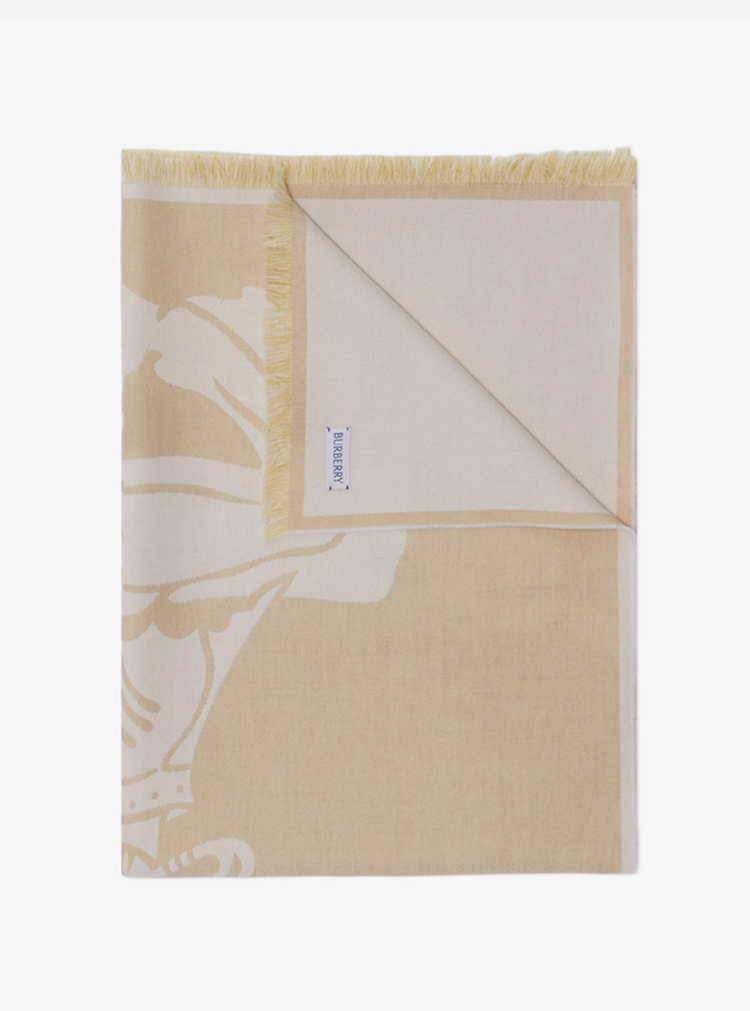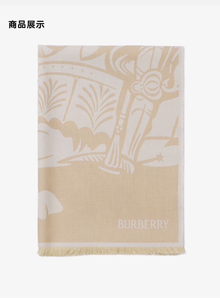 BURBERRY 巴宝莉 女士马术骑士徽标棉毛混纺围巾 米色 8093750 B7311