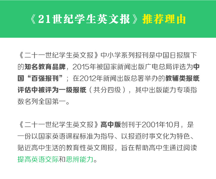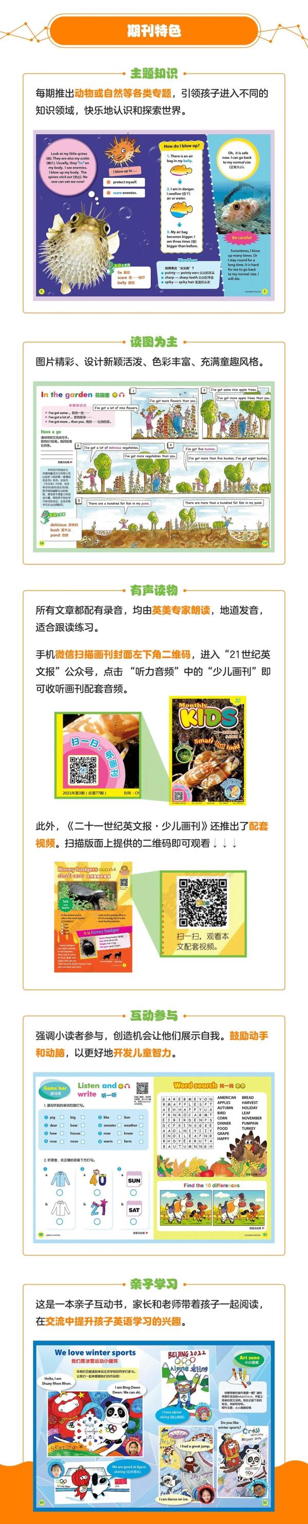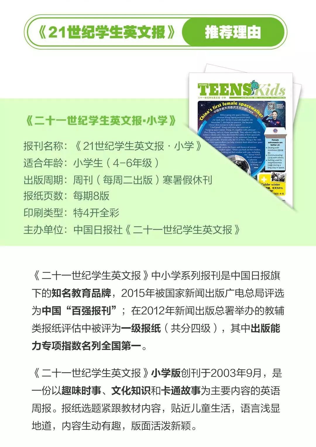 1、21世纪英语报为周刊,少儿画报全年10期,小学版全年40期,初中及高中版全年50期,每月底发出当月出刊的内容。