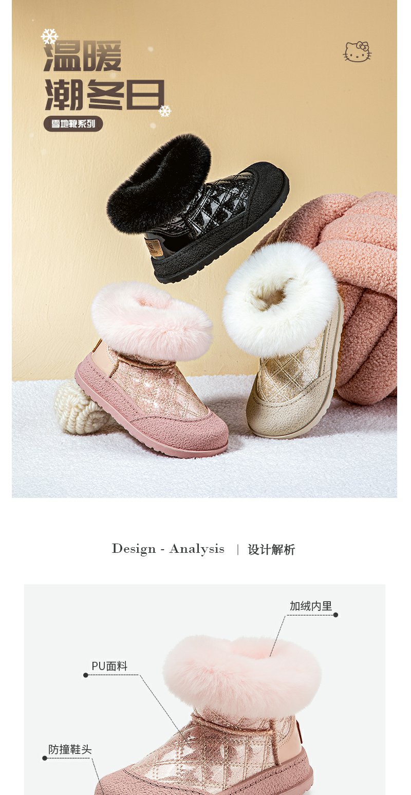 HelloKitty童鞋女童加绒保暖雪地靴冬季新款儿童加厚棉靴大童冬鞋