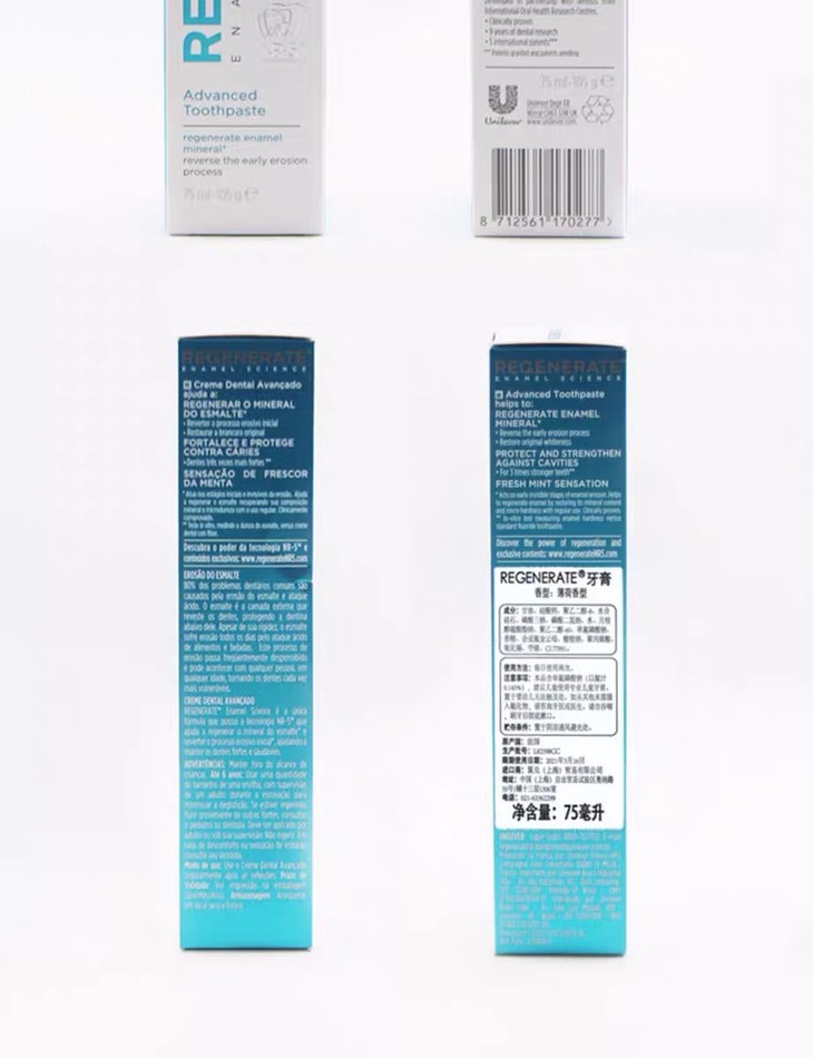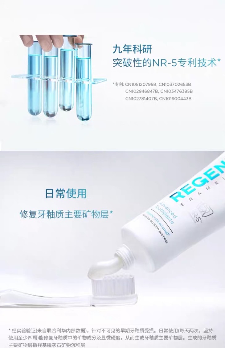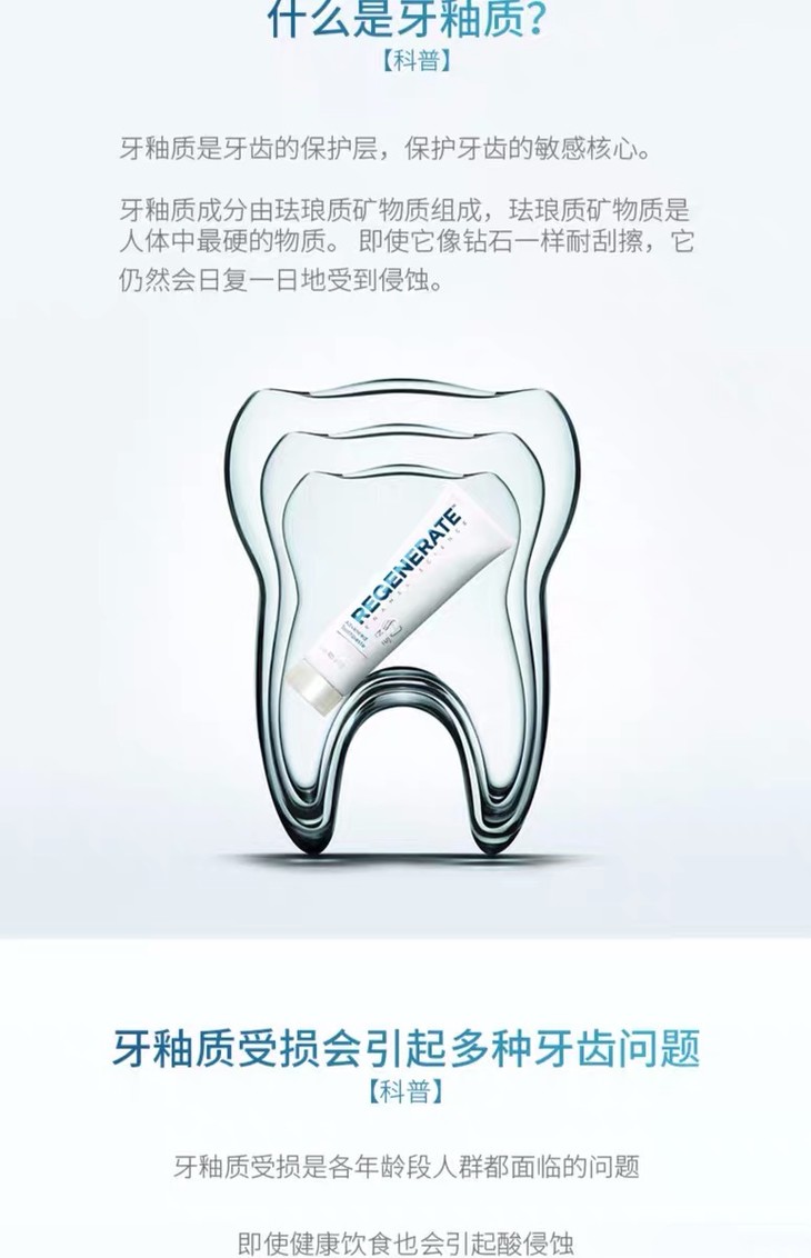 3、功效:它是传说中的土豪牙膏,法国Regenerate是近几年来海外炙手可热的牙齿护理品牌,是世界上发明生产的第一款修复牙釉质的牙膏,同时具有美白牙齿,去除口气的作用,美白去黄,保护牙齿不受细菌侵害。