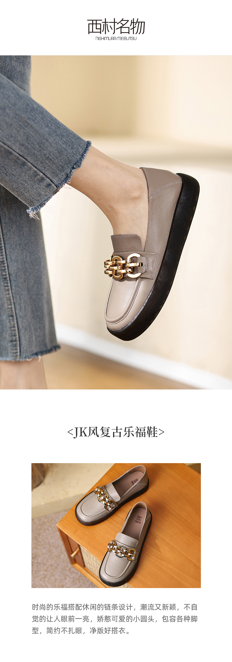 西村名物2022春季新款乐福鞋一脚蹬单鞋女松糕英伦风小皮鞋T22AM17621