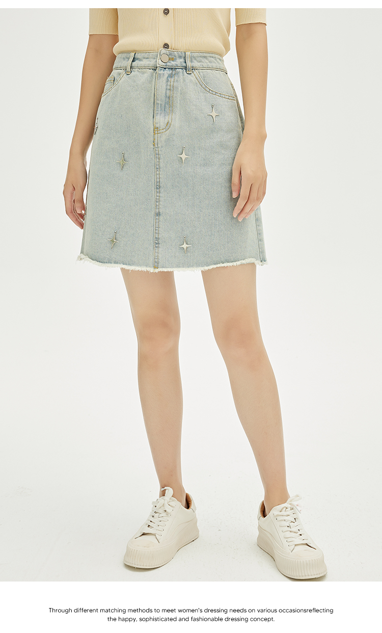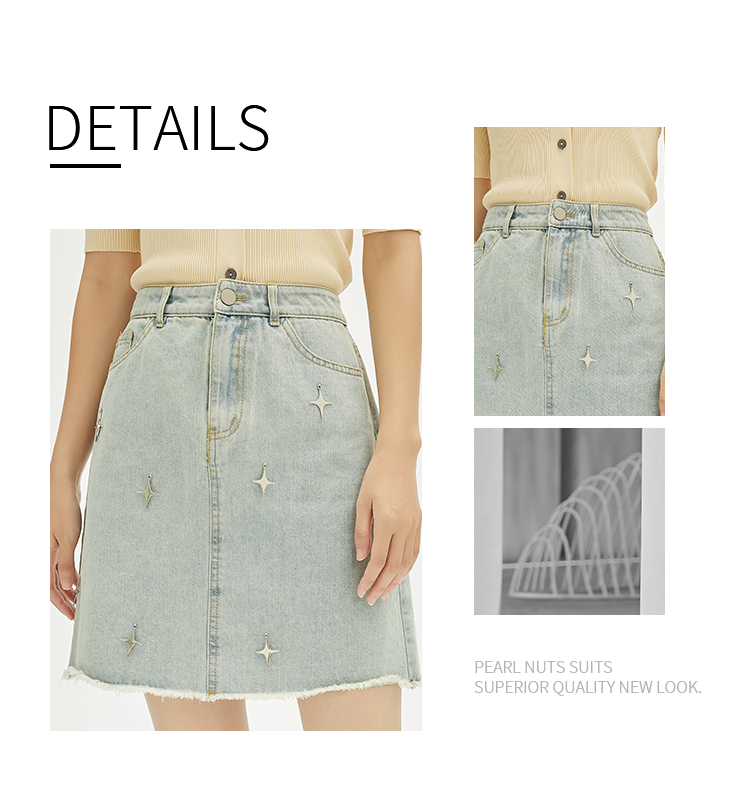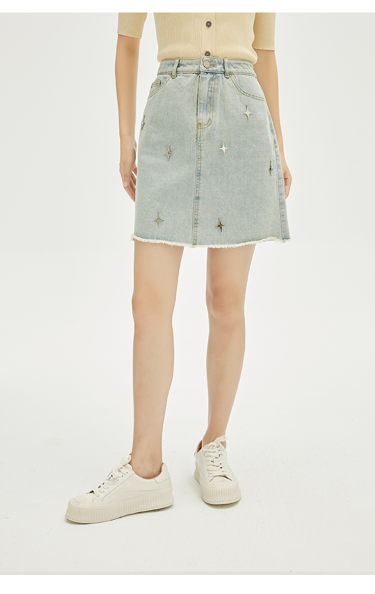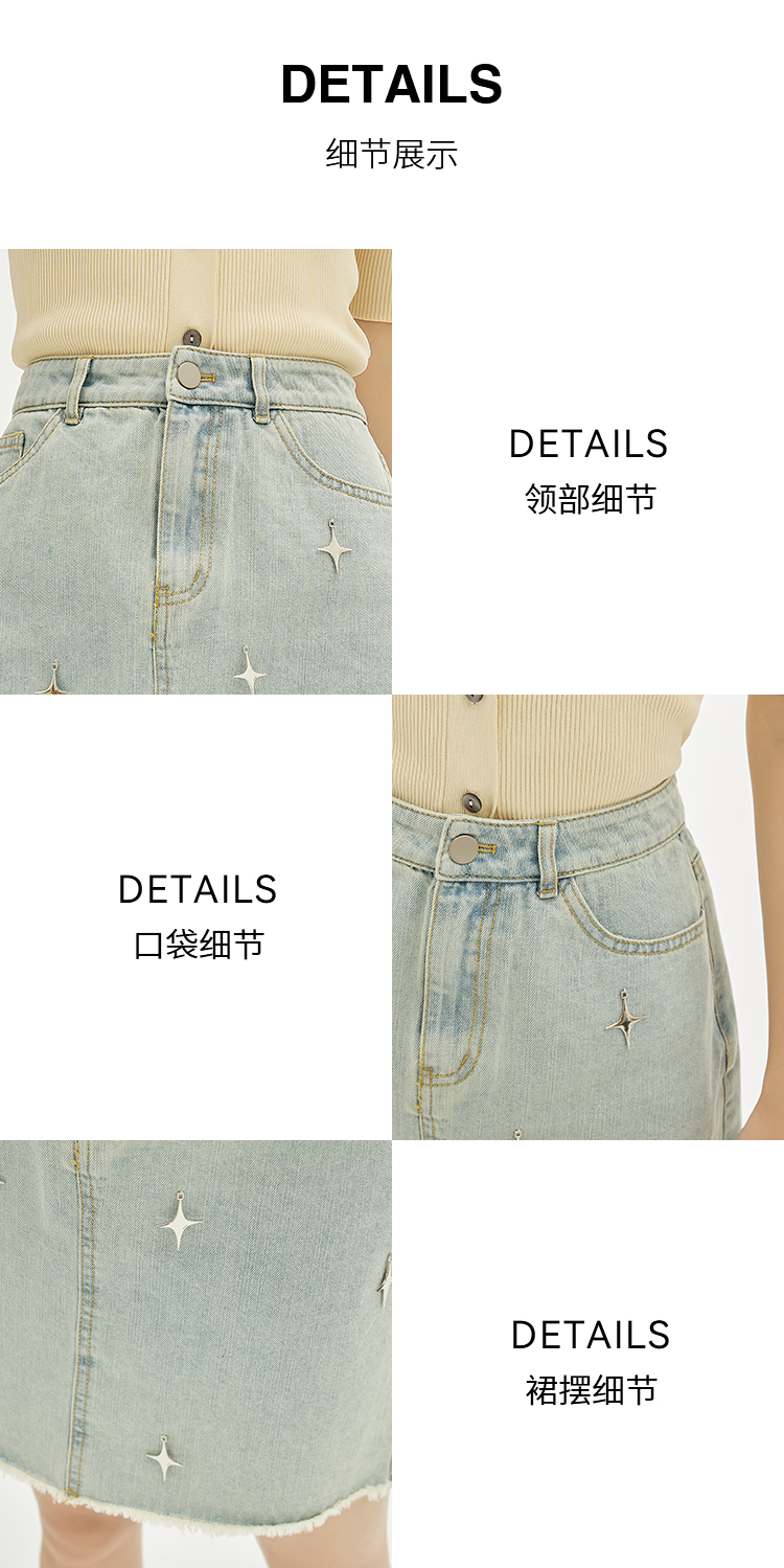 NUTS秋季新款时尚气质设计感星星饰品点缀水洗牛仔半裙332061149