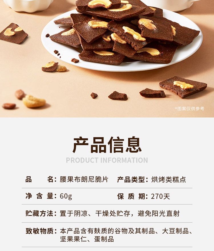 【诺梵】腰果布朗尼脆片坚果饼干休闲零食