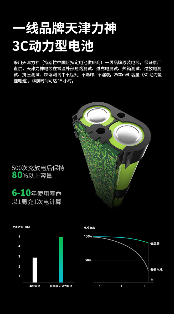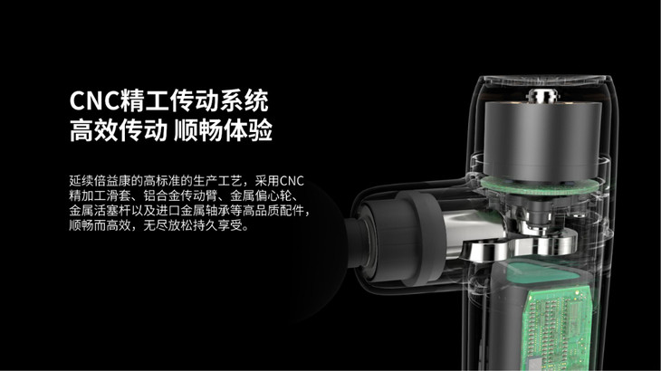 就拿便携款深层肌肉筋膜枪来说,电池采用一线品牌天津力神,是国内少有的3C动力型电池,续航时间长达15个小时。双轴无刷电机,运行平稳,寿命更长。李俊玲介绍:“好机芯就像好的发动机一样重要,而且这款筋膜枪还有5个造型不同的机械头、5档变频可以调整,适合多种人群。”