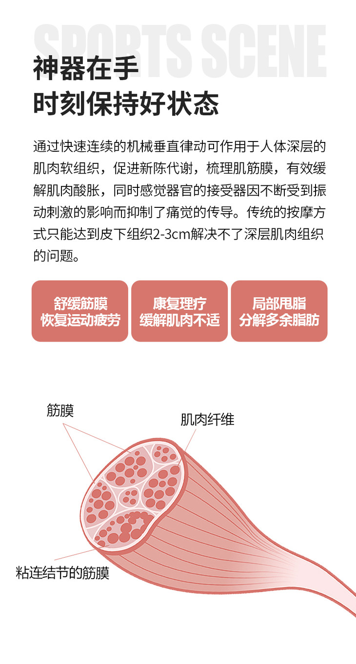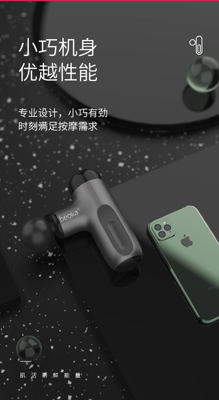 如果是登山、徒步爱好者或是给女性、老年人专用的,选择迷你款就足够了,比如MINI肌肉筋膜枪,体积小、重量轻,但打击深度直达肌肉层,可以高效环节酸痛感。