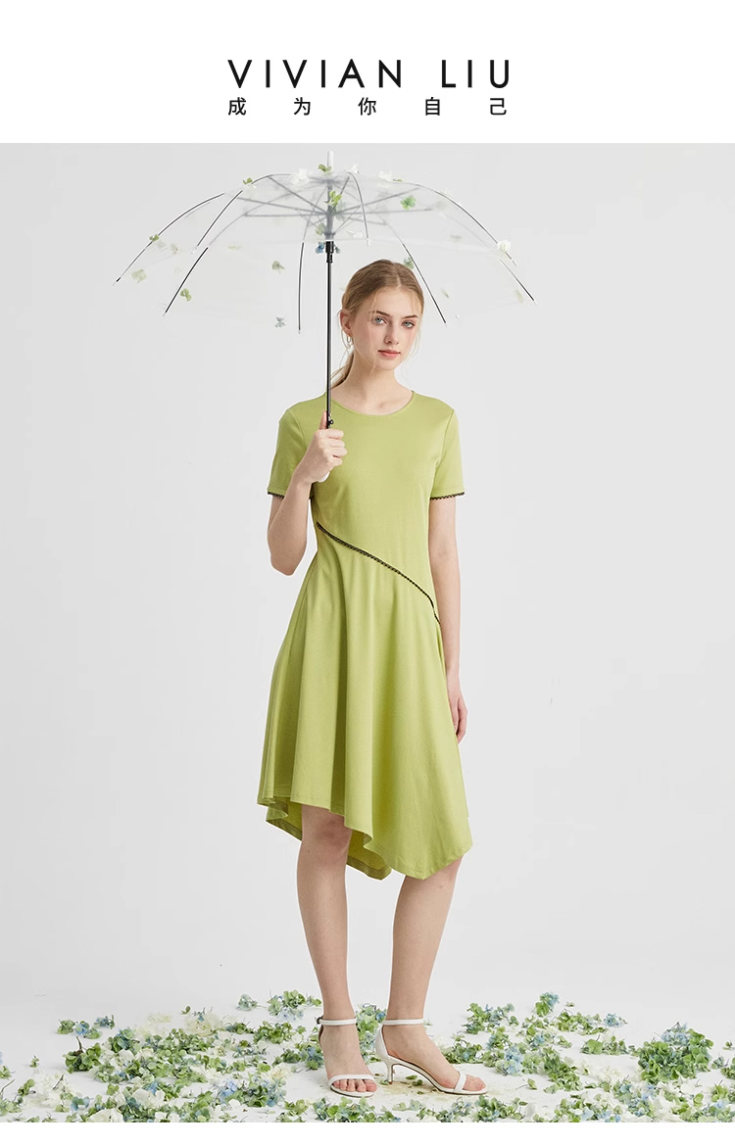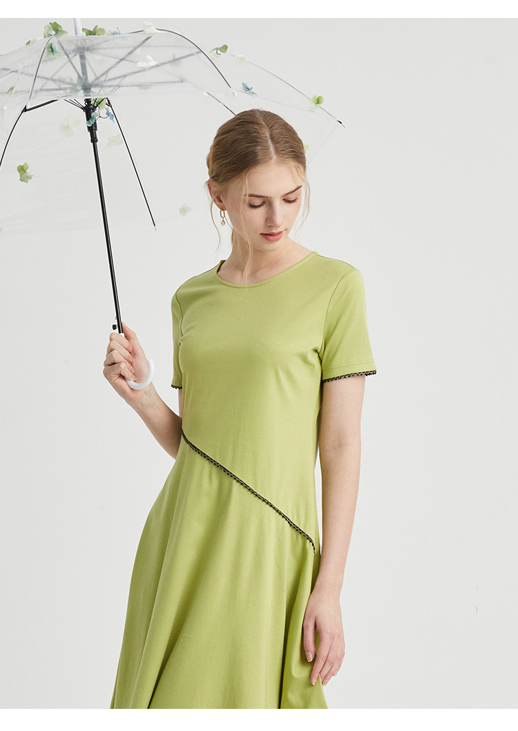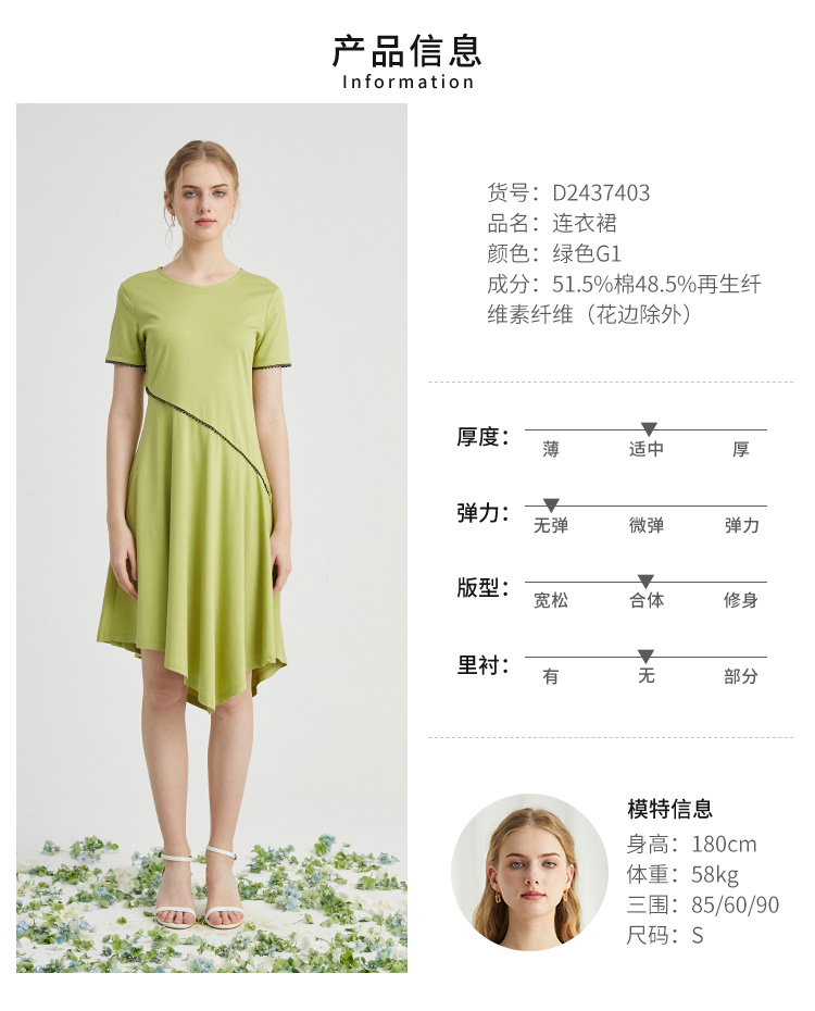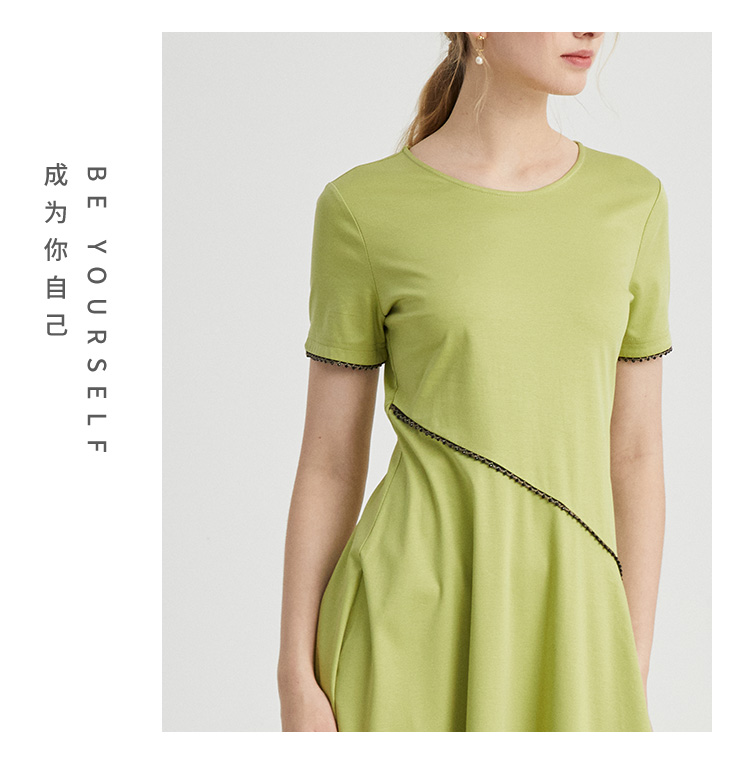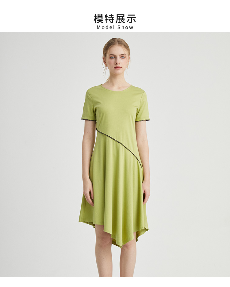 VIVIAN LIU薇薇安刘D2437403夏女装新款圆领不对称下摆针织连衣裙