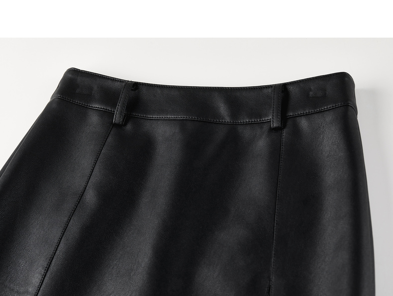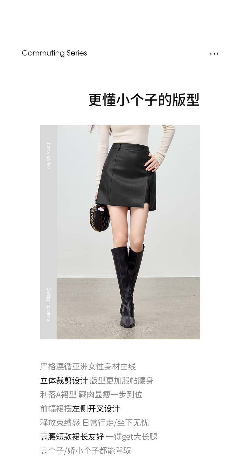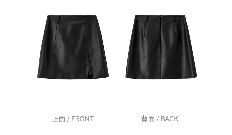 【内购】【三好裙】小个子通勤高腰开叉设计遮肉显高短款PU皮裙-Q54QA3933