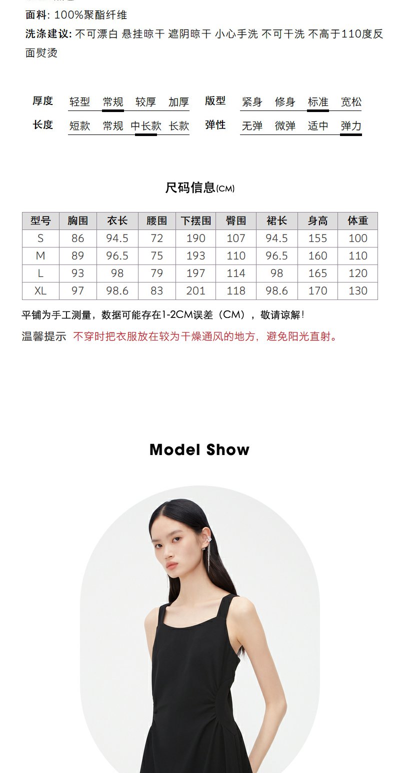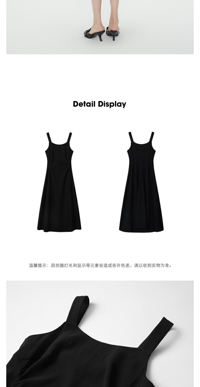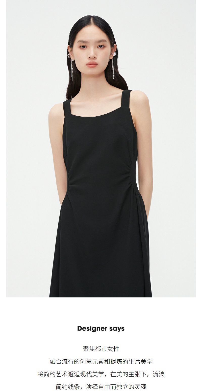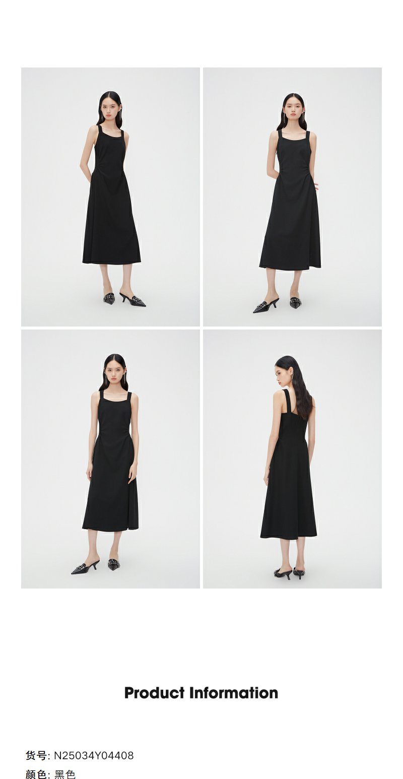 NEELLY纳俪商场同款春新款方领吊带裙女收腰显瘦高级感优雅长裙N25034Y04408