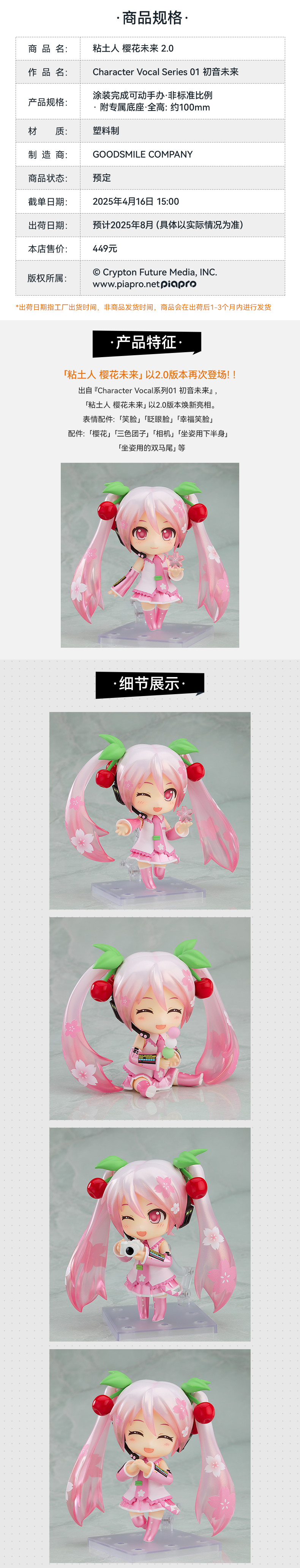 【GSC现货】粘土人 樱花未来 2.0 Character Vocal Series 01 初音未来 官方限定