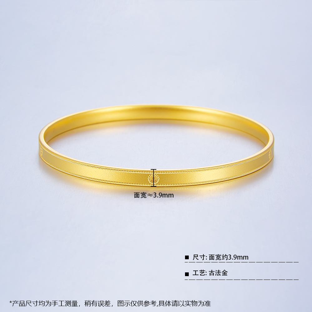 【限时克减150元】足金999 古法空心(面宽约3.7-4.1mm)圆形鱼鳞固口手镯(YGFSZ00428)(预售产品下单后不退款不退货不换货不补差价)