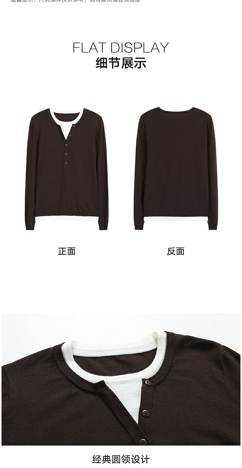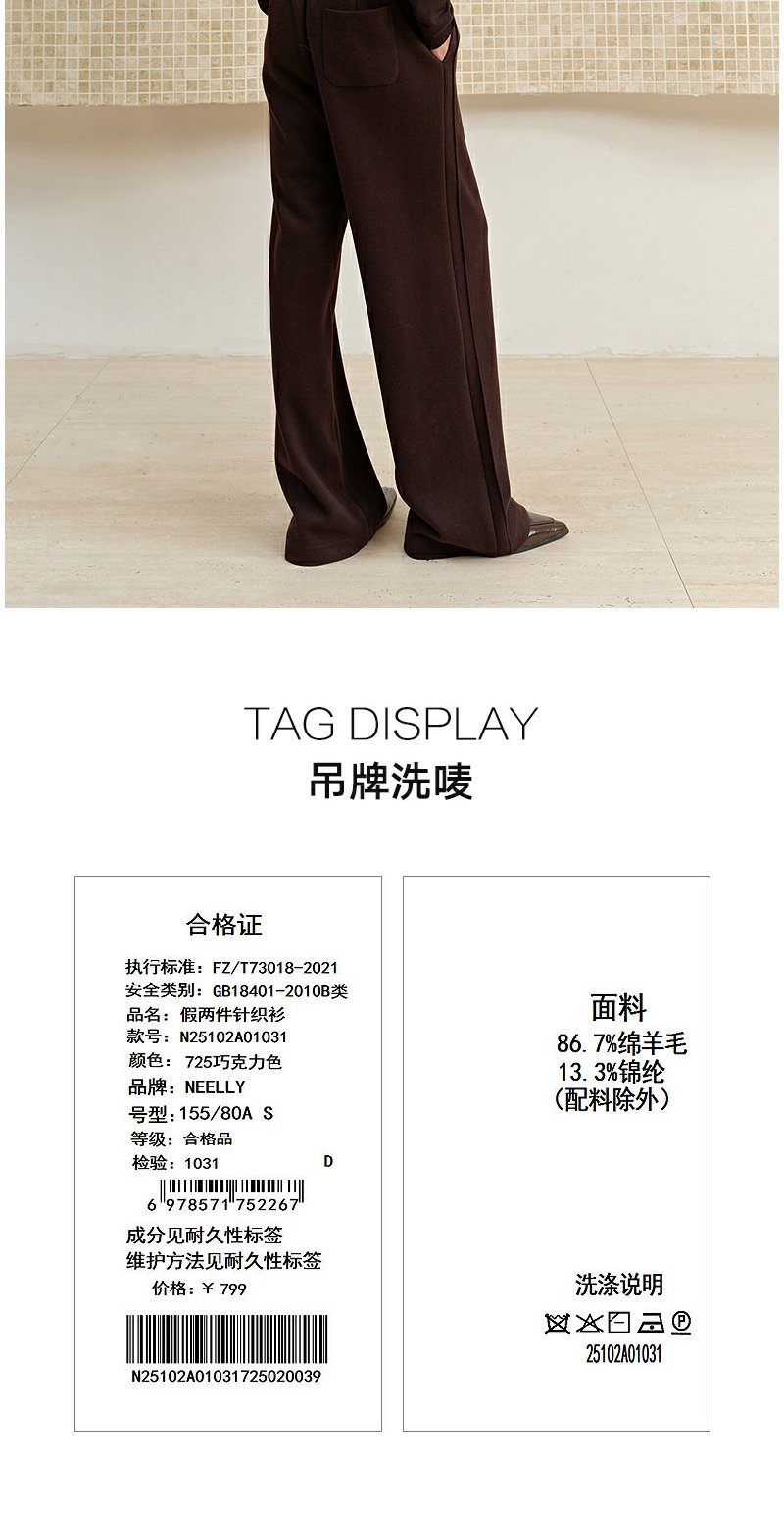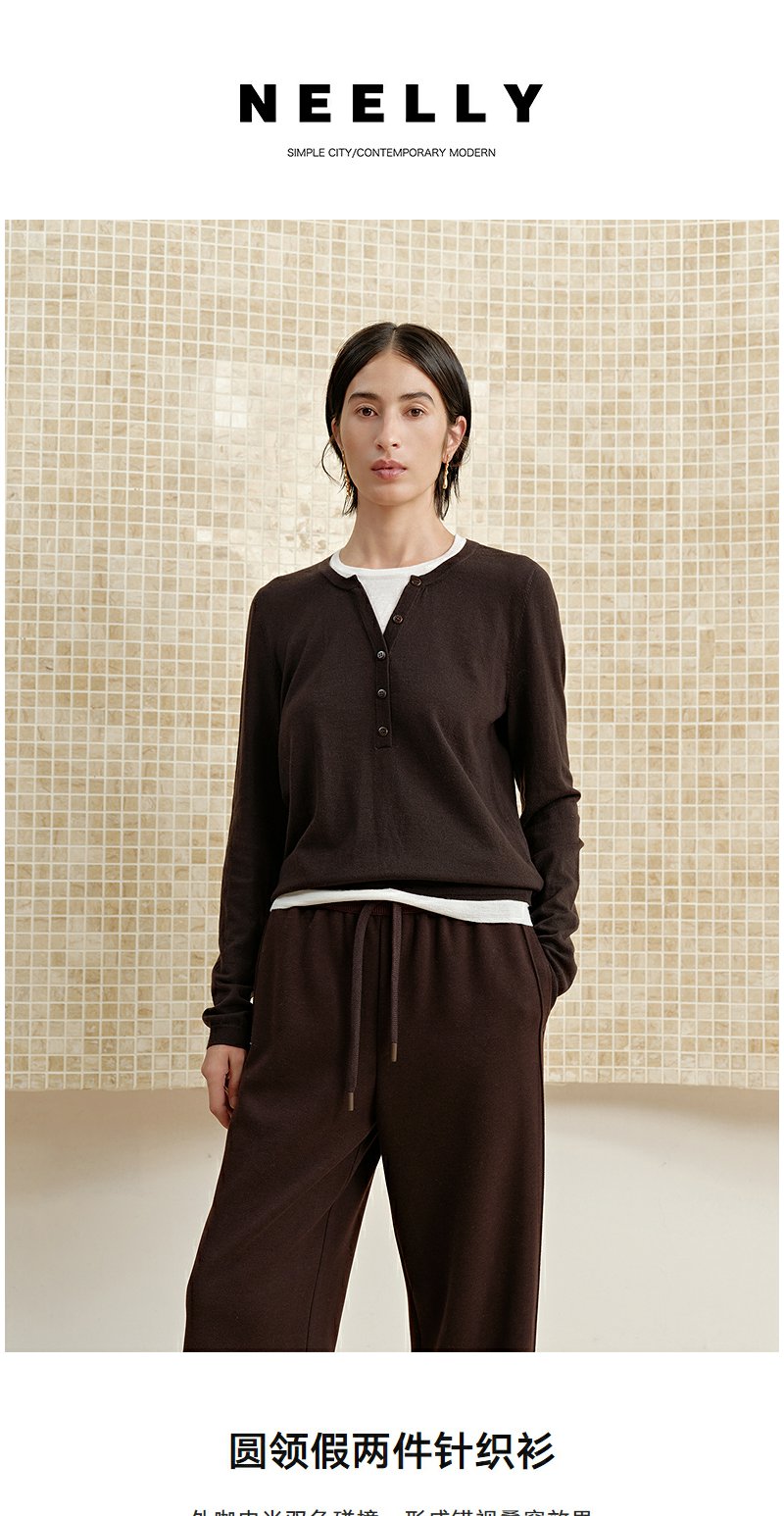NEELLY纳俪商场同款冬季新款经典圆领假两件针织衫女百搭通勤上衣N25102A01031