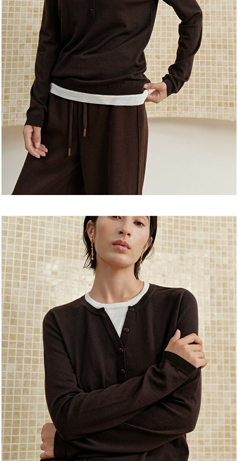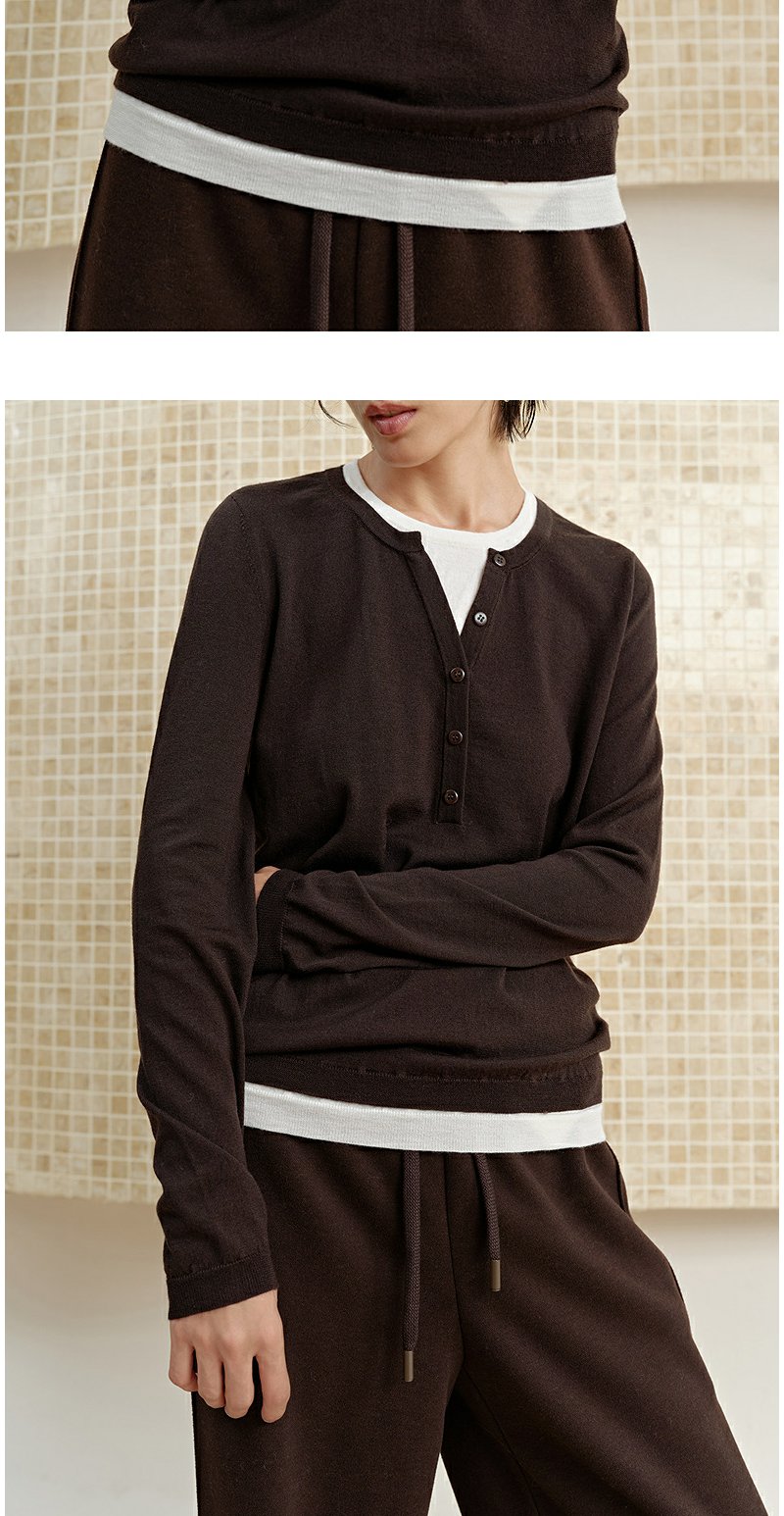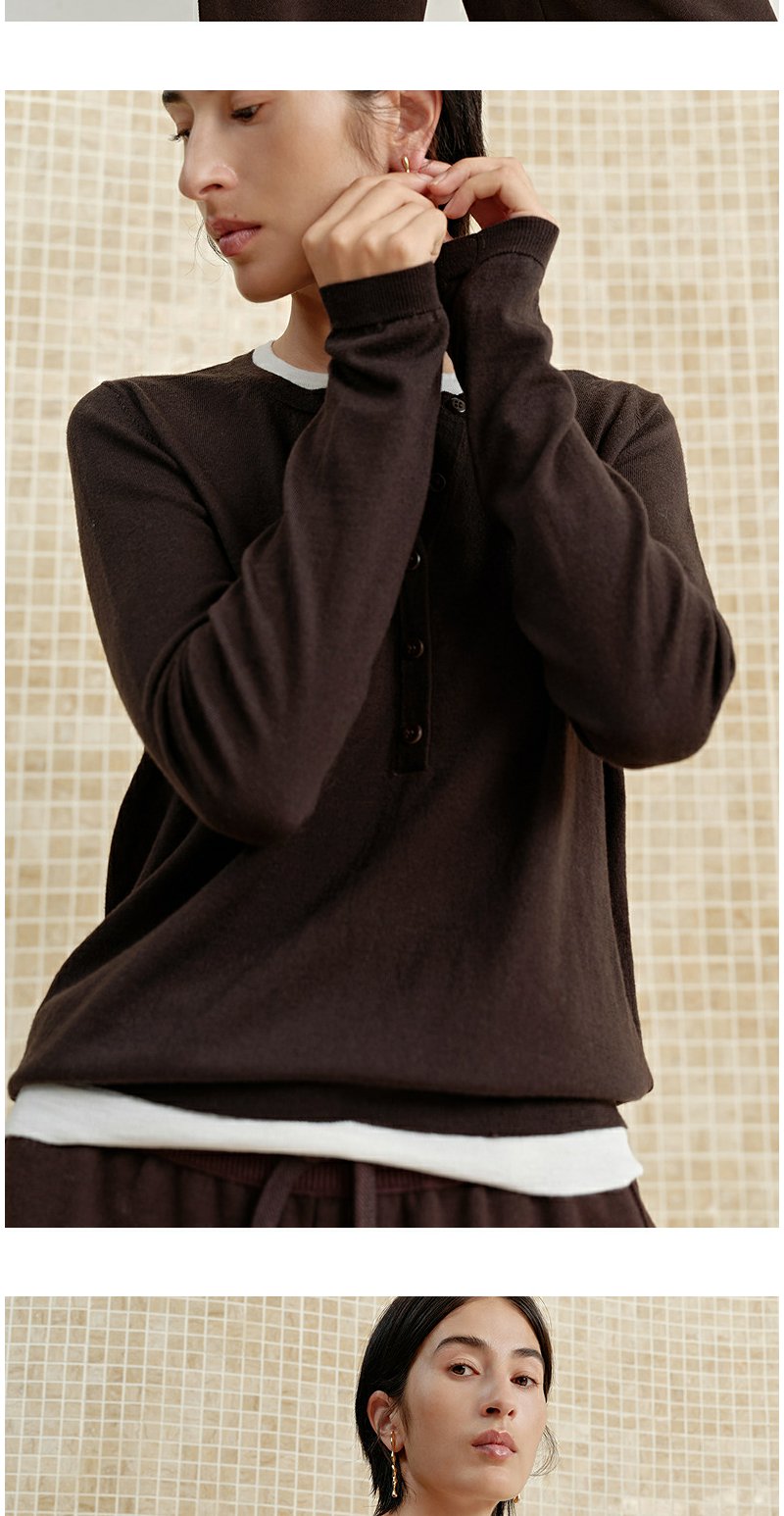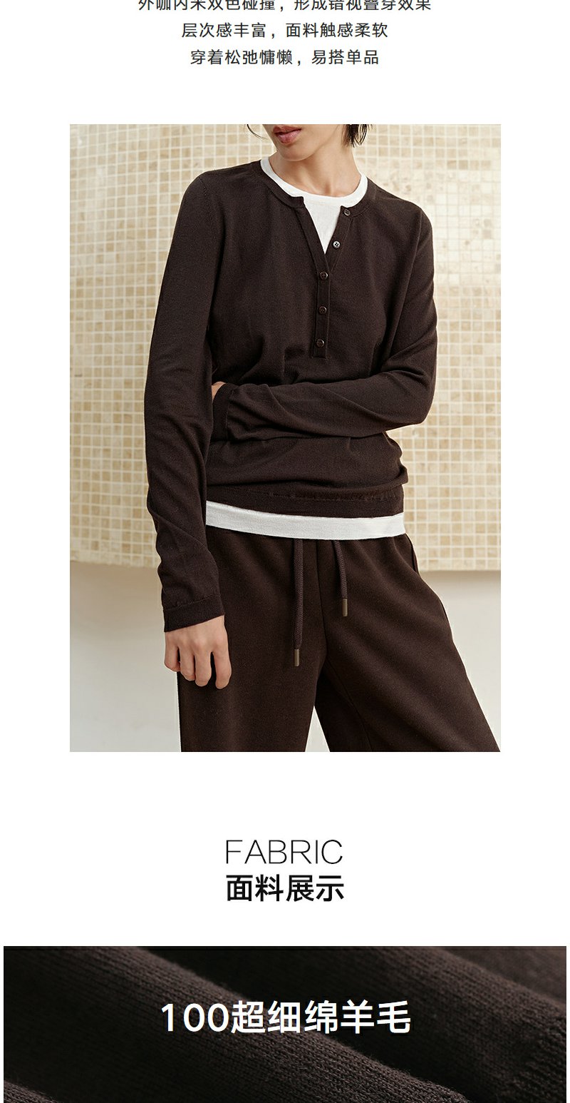NEELLY纳俪商场同款冬季新款经典圆领假两件针织衫女百搭通勤上衣N25102A01031