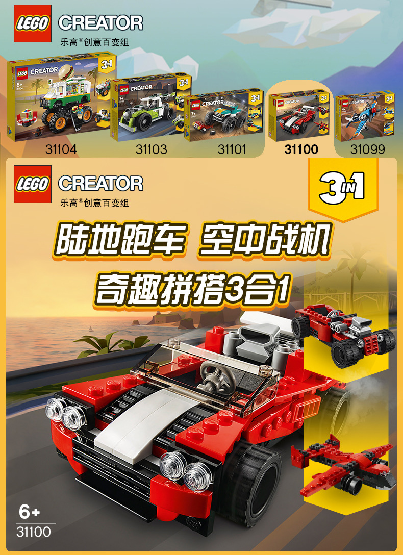 Lego/乐高 创意百变系列 红色跑车 6+ 31100-CN