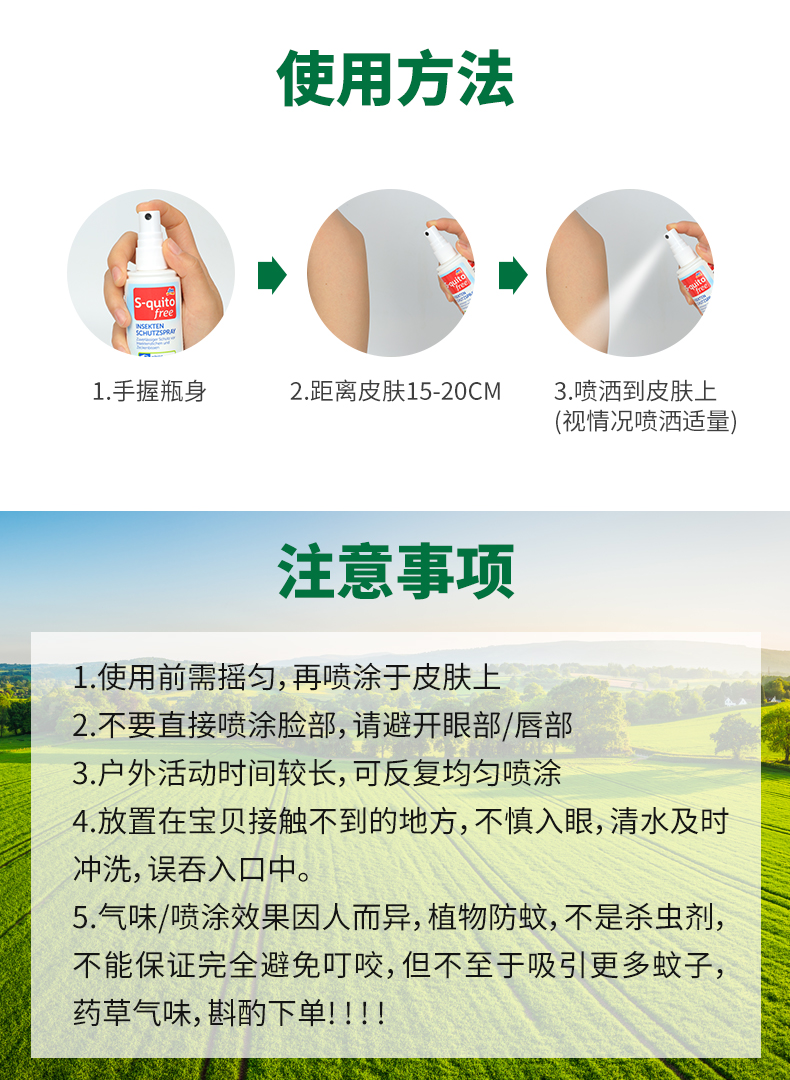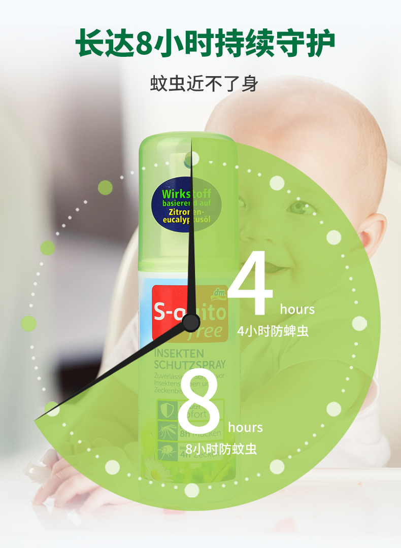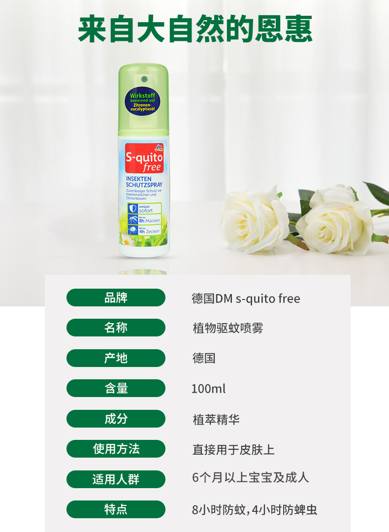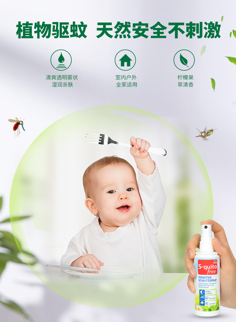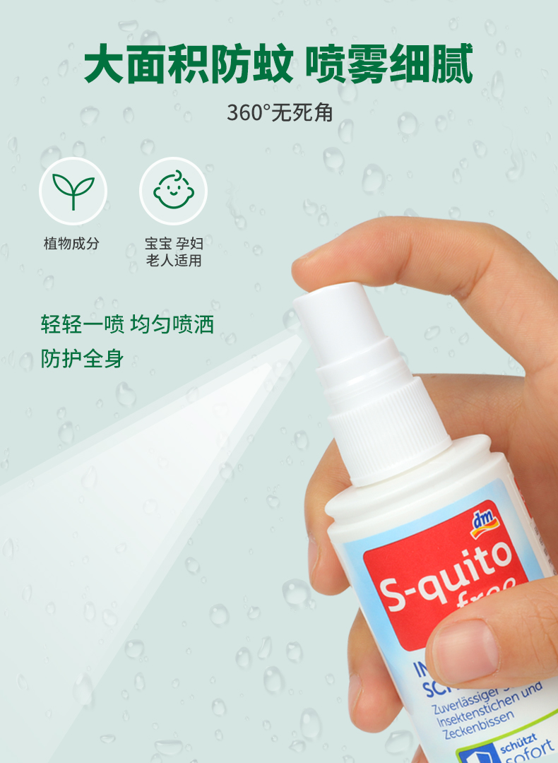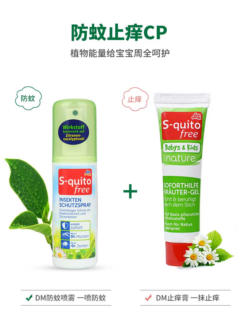 【一般贸易】德国 DM驱蚊S-quito free宝宝防蚊液 儿童叮咬喷雾 婴儿户外驱蚊水