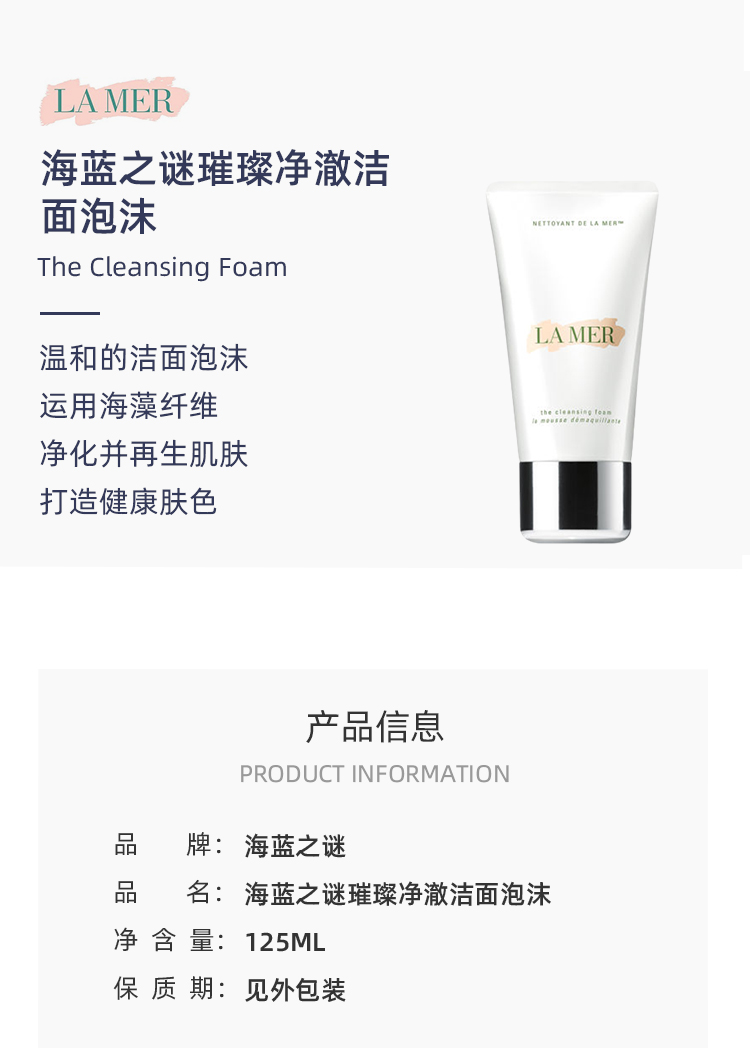 【品牌授权 国内现货】lamer海蓝之谜净透洁面洁面乳泡沫温和洗面奶125ml 清爽洁面膏