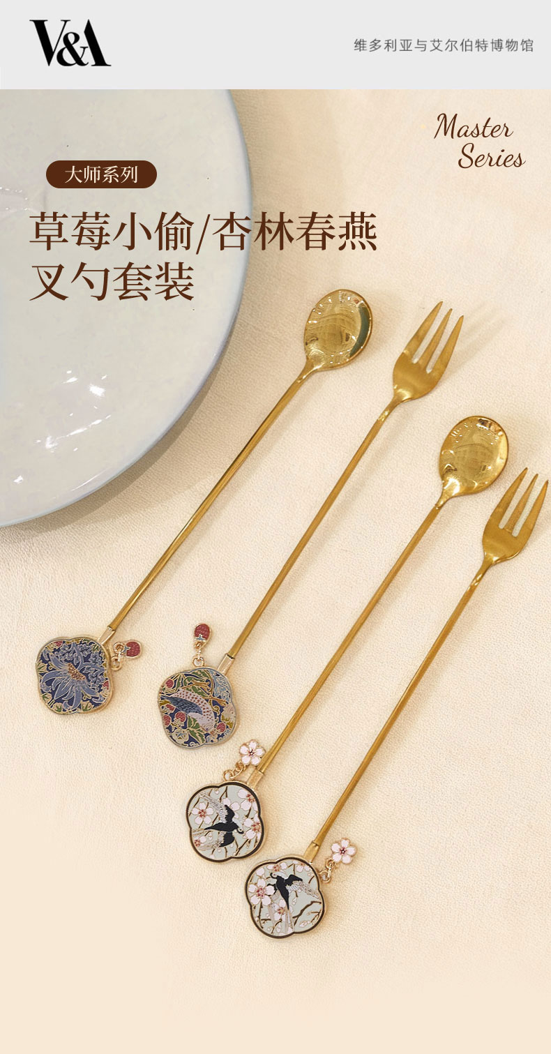 V&A博物馆 威廉莫里斯系列-草莓小偷 工艺美术大师系列-杏林春燕 叉勺套装