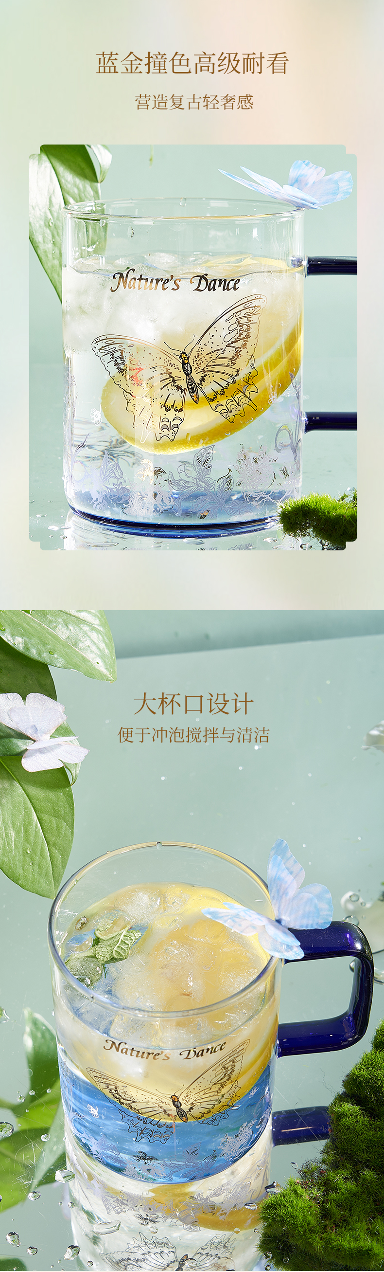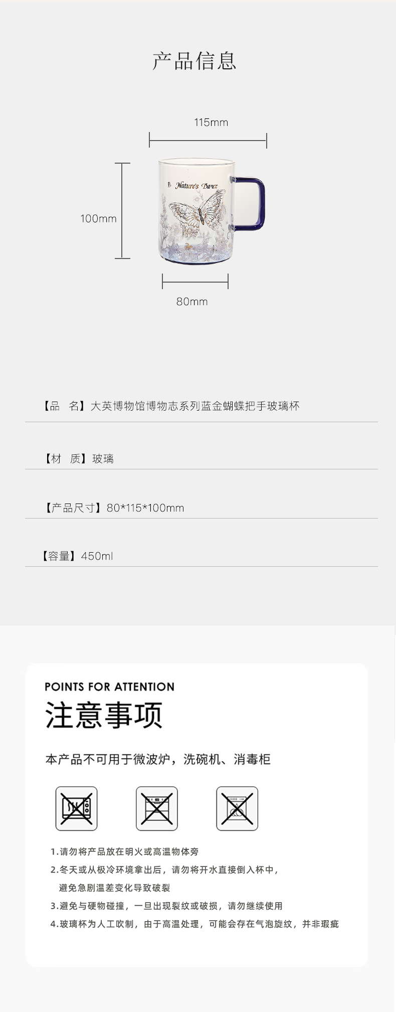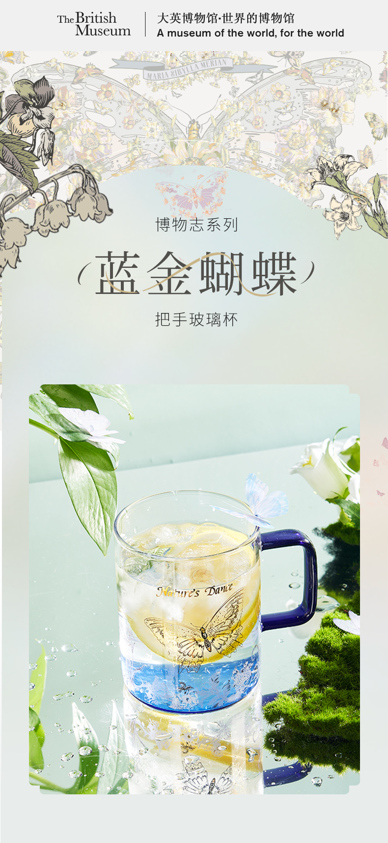 大英博物馆 博物志系列 蓝金蝴蝶把手 玻璃杯
