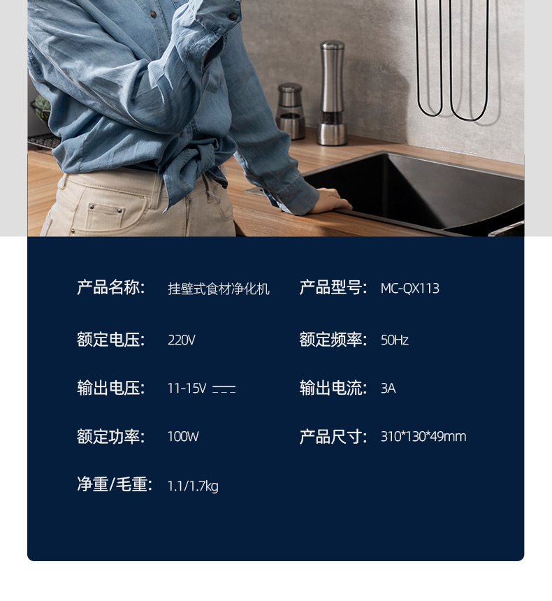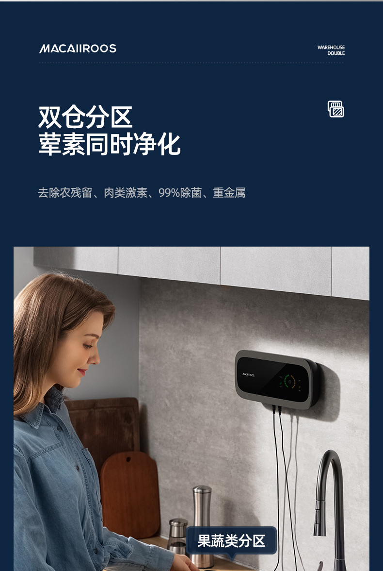 迈卡罗 (MACAIIROOS))果蔬清洗机家用壁挂洗菜机食材净化机器蔬菜水果鱼肉虾去农药残 MC-QX113