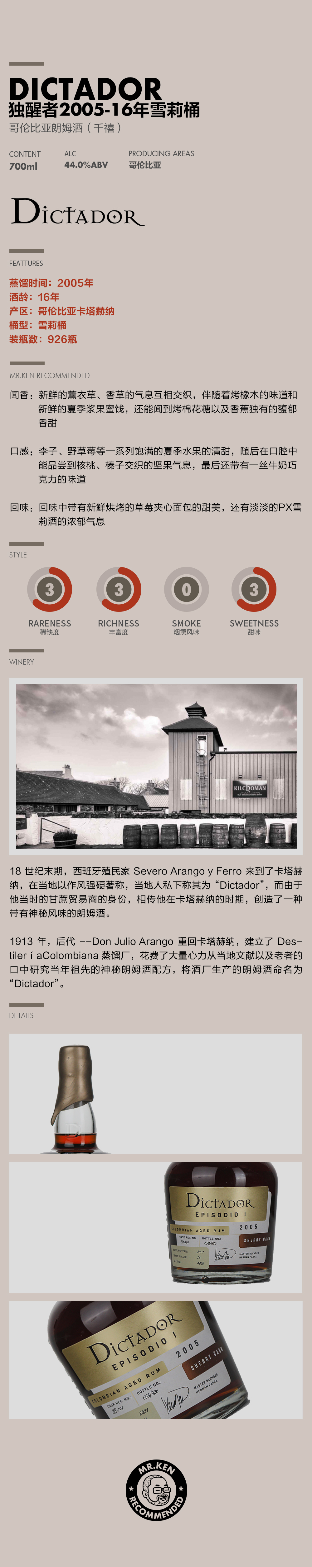 独醒者(Dictador)2005-16年雪莉桶哥伦比亚朗姆酒(千禧)