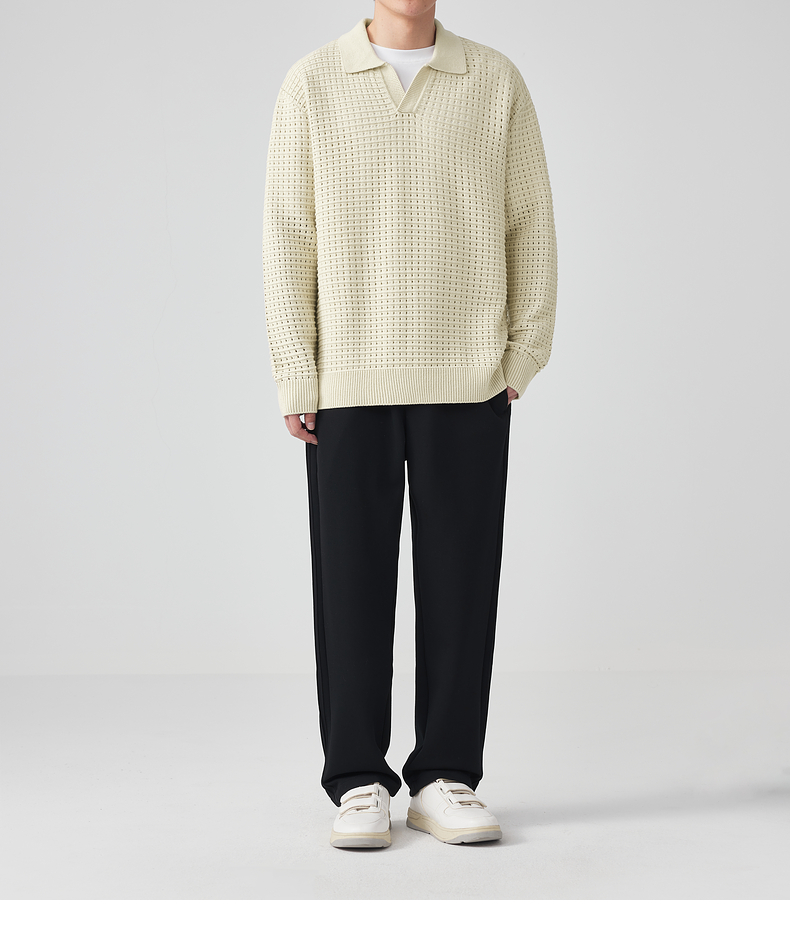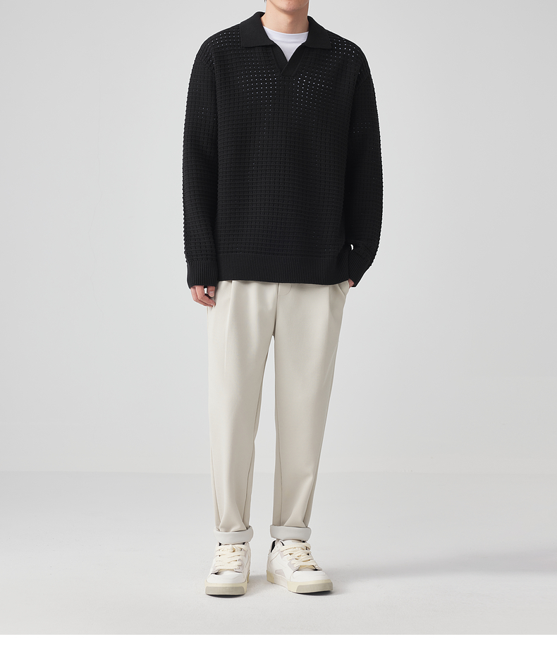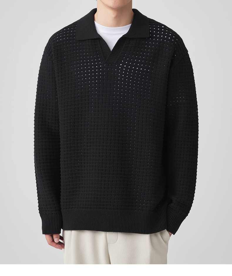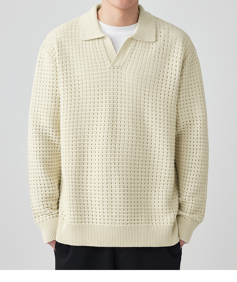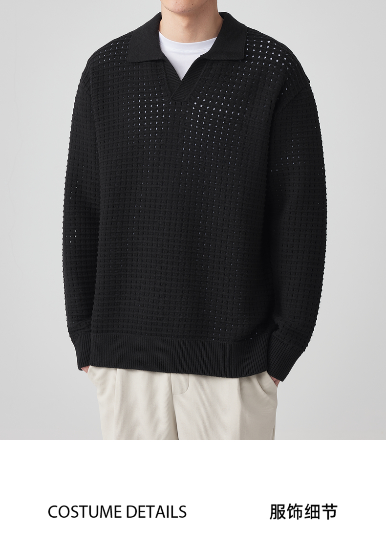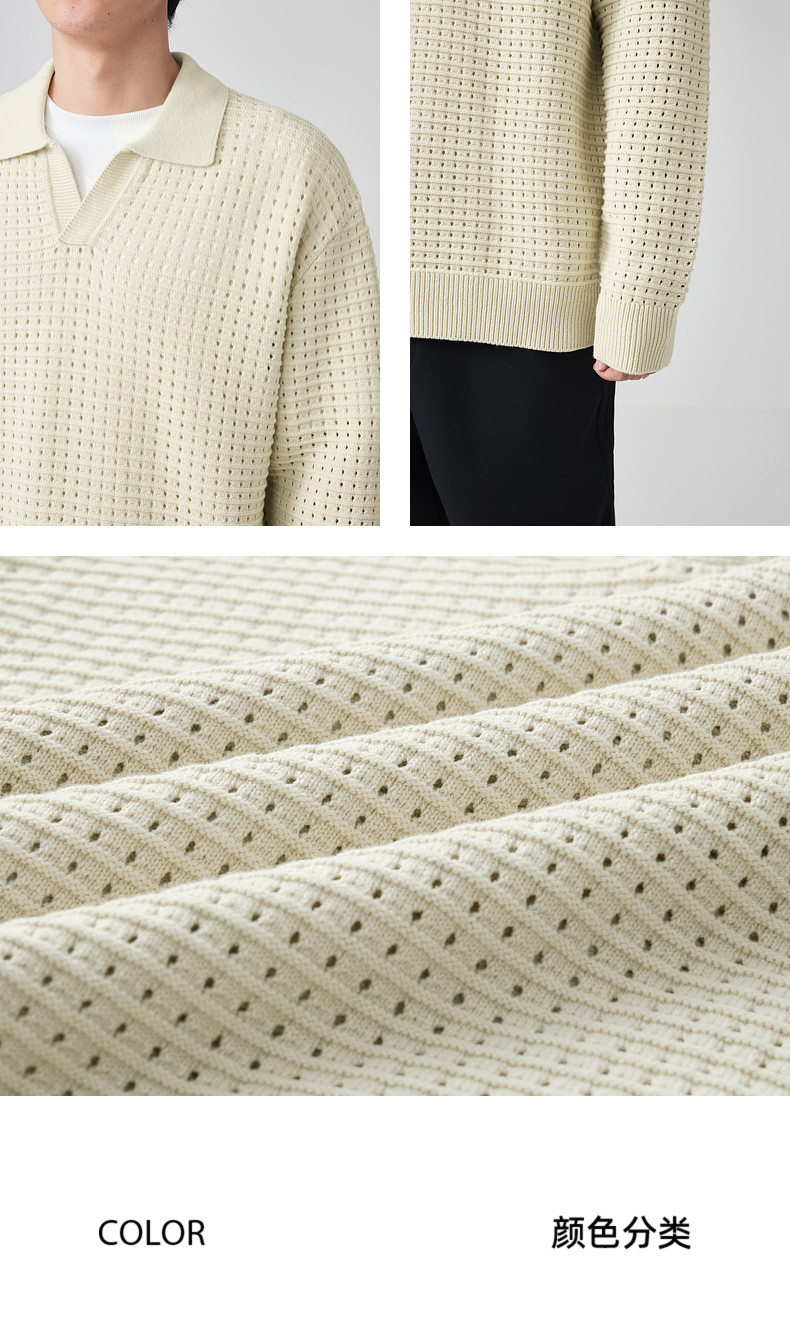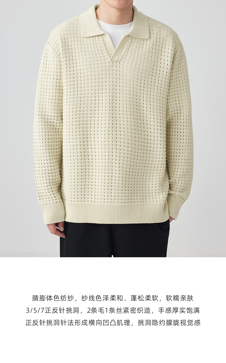 墨麦客男装 肌理色纺纱衬衫领套头毛衣男士翻领针织衫外套20459。