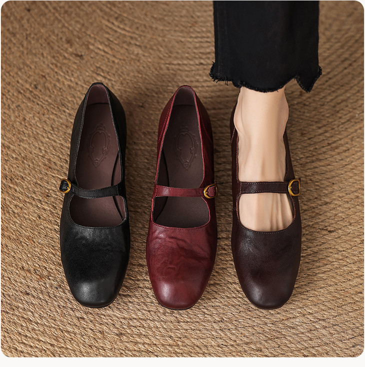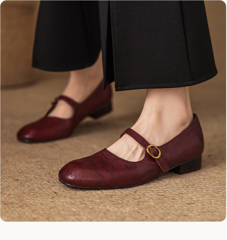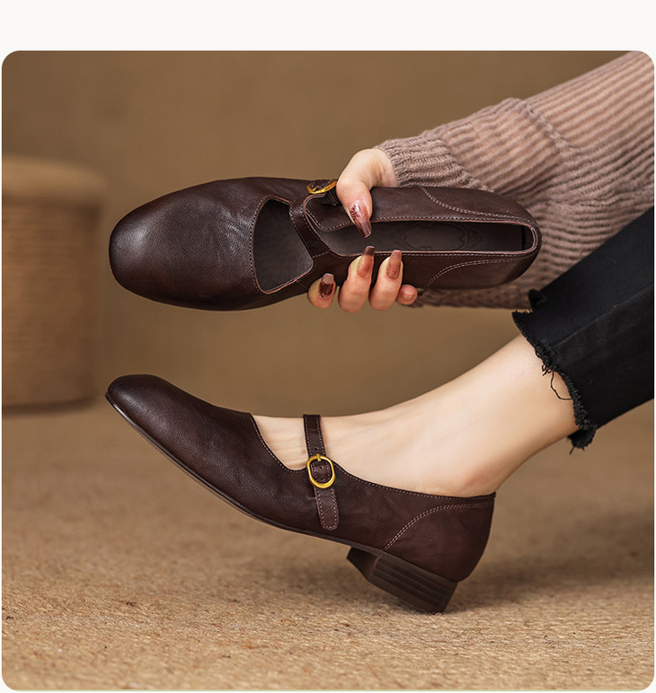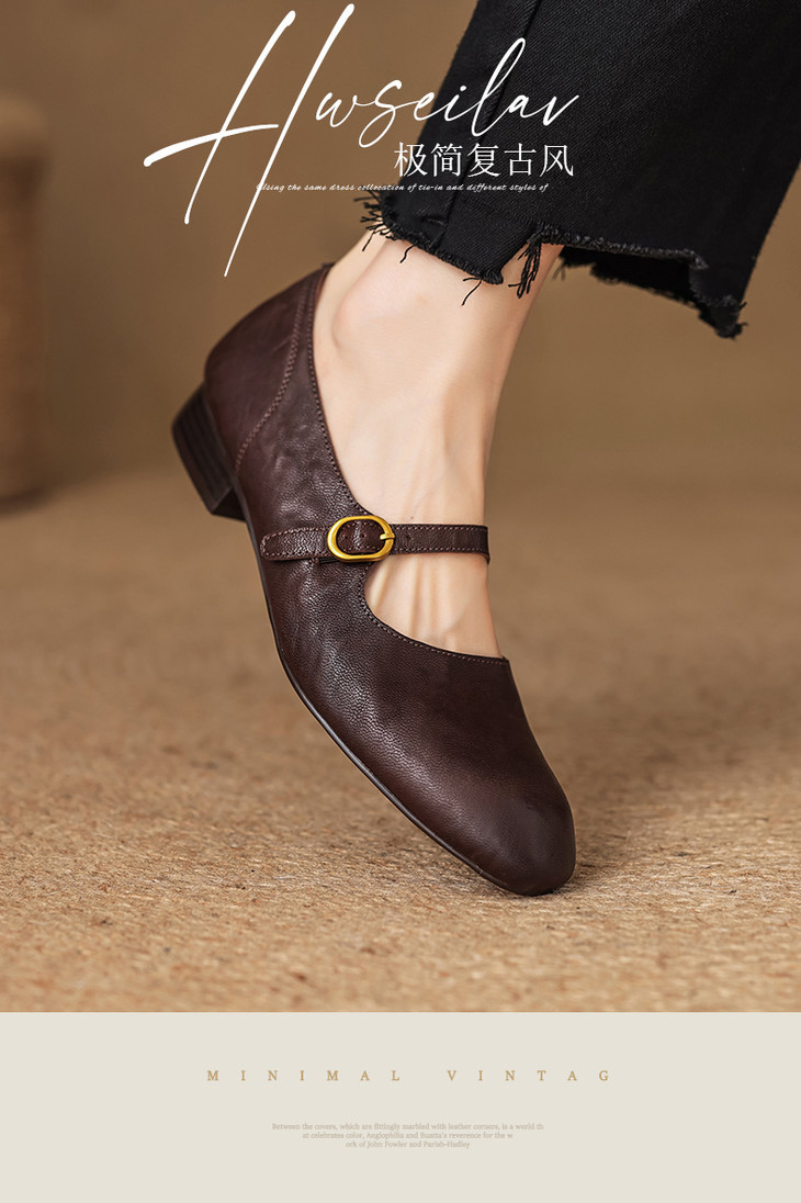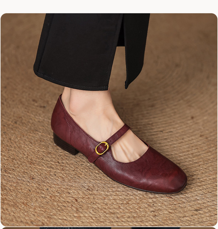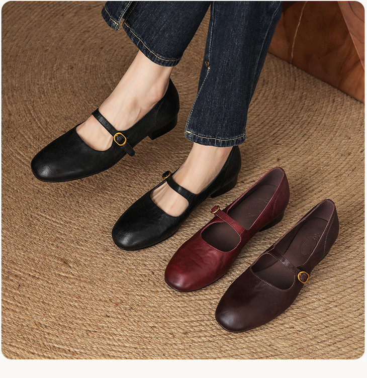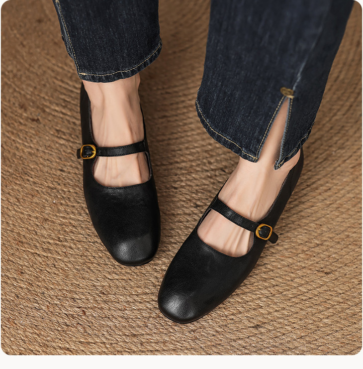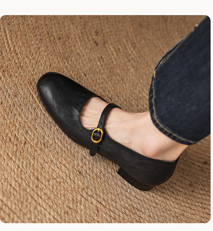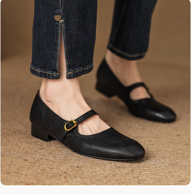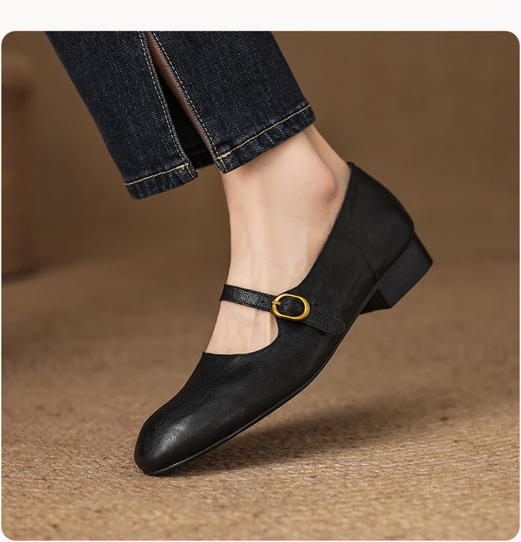 【预售5天】巨好穿~真皮一字扣带玛丽珍鞋女复古通勤低跟法式单鞋&AA3006