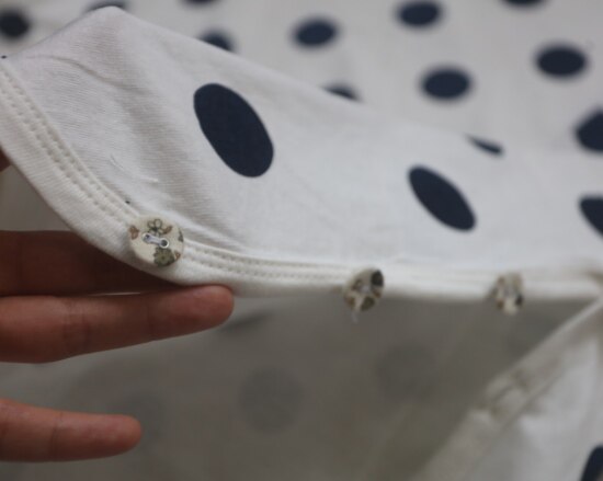 图案 刺绣/贴布/环保胶浆 手缝+机车缝 所以同款图案的位置 会有稍许不同