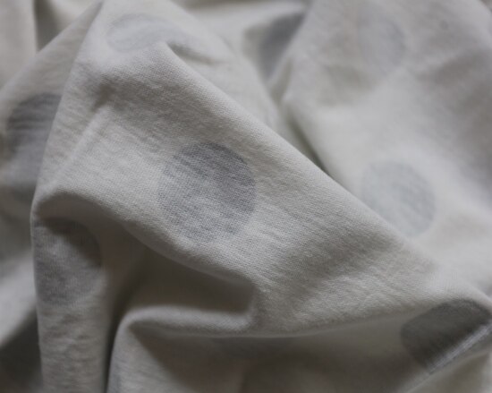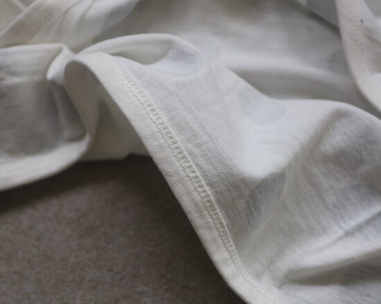 所有在衣身上的印染 都是环保胶浆 能透出底部面料纹路 各角度看都不反光