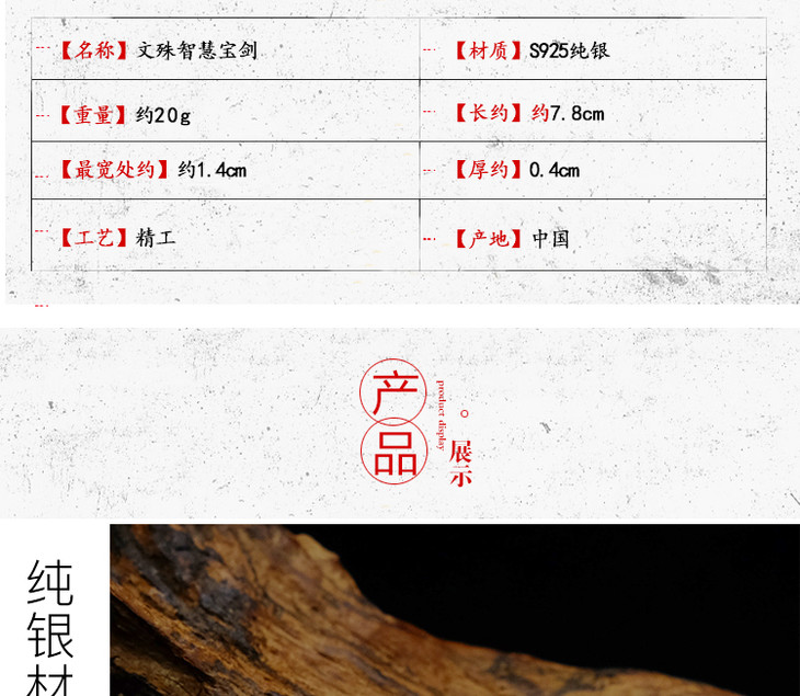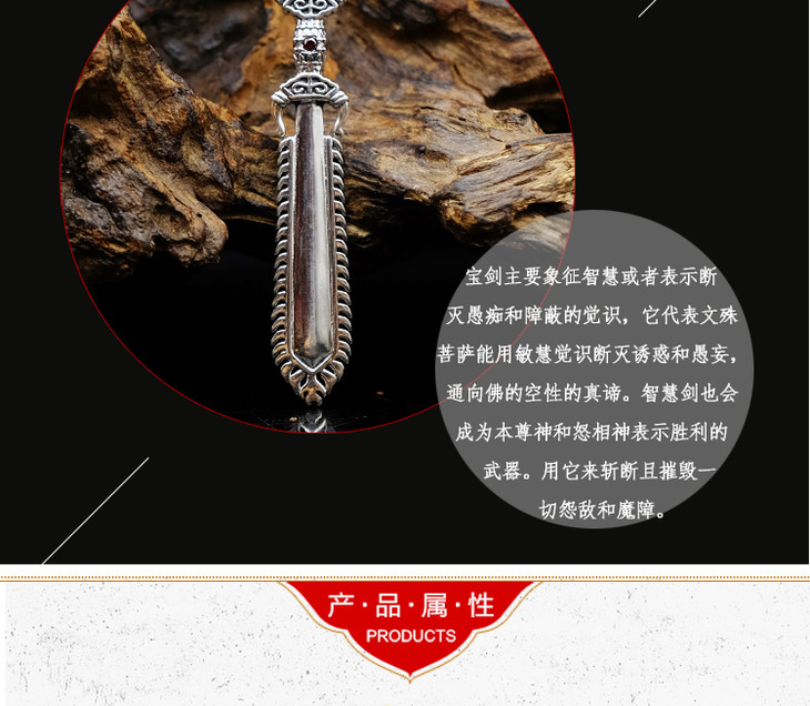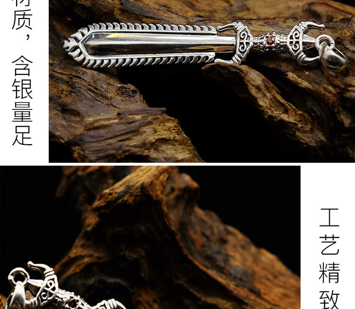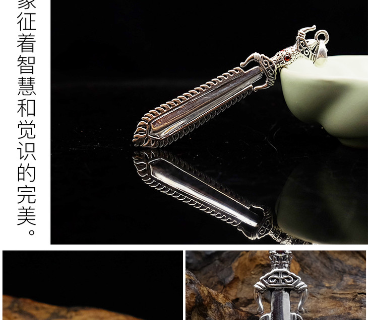 藏传密宗法器 纯银文殊智慧宝剑吊坠挂件文殊菩萨法器