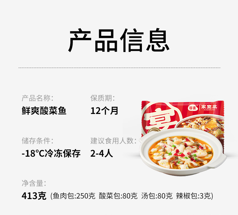 谷言鲜爽酸菜鱼413g*3袋-黑鱼鲜香一口酸爽-不支持7天无理由退换货