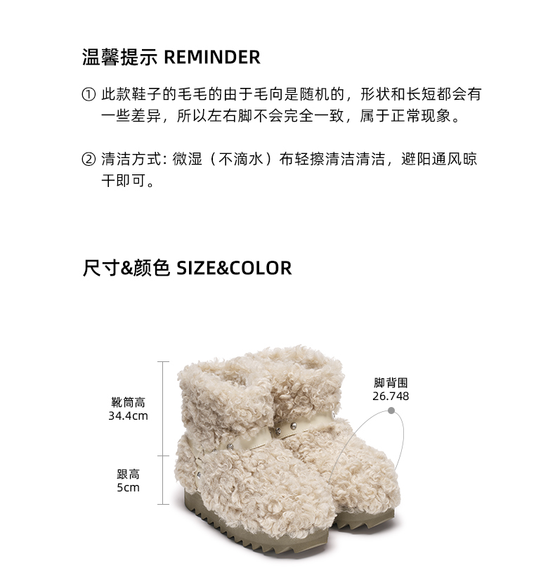 lost in echo秋冬保暖防寒加厚毛毛厚底增高圆头高帮雪地靴子短靴