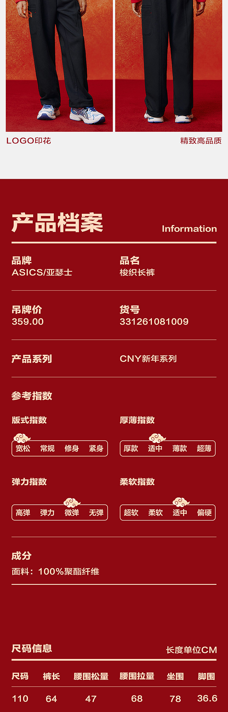 【商场同款】ASICS/亚瑟士儿童2026新年款加厚针织长裤直筒保暖