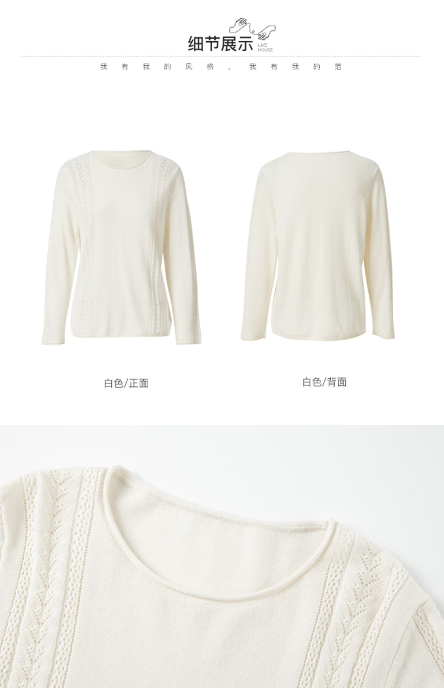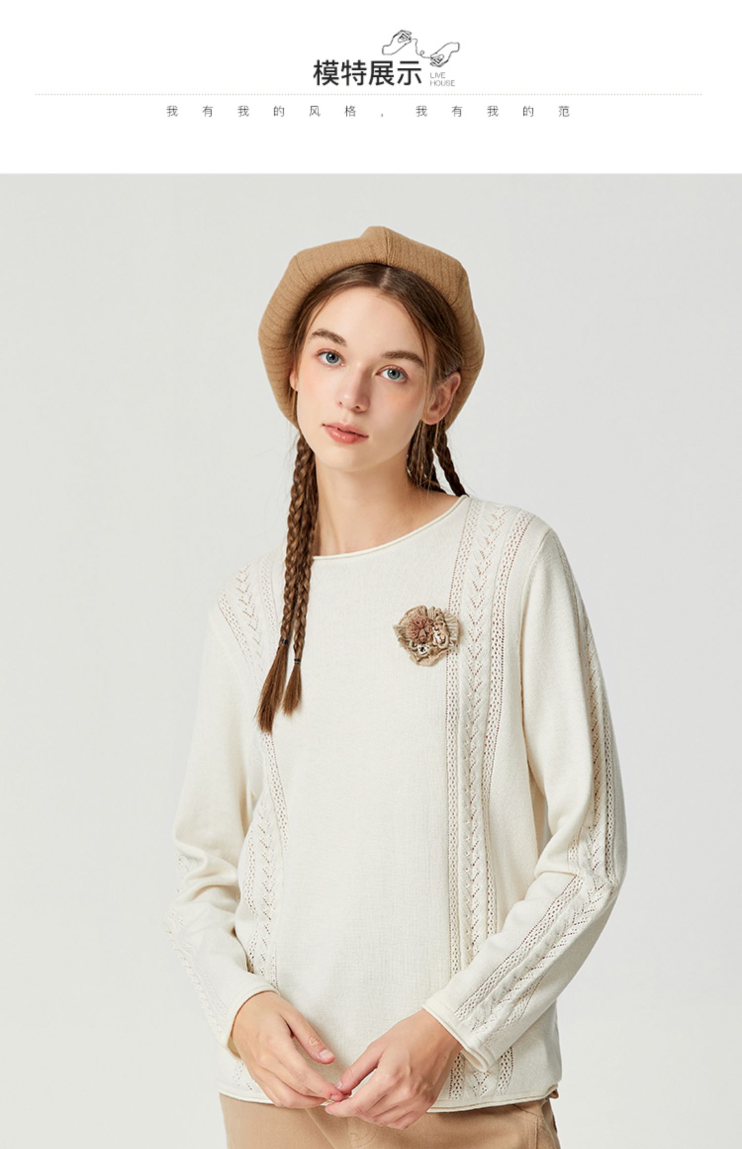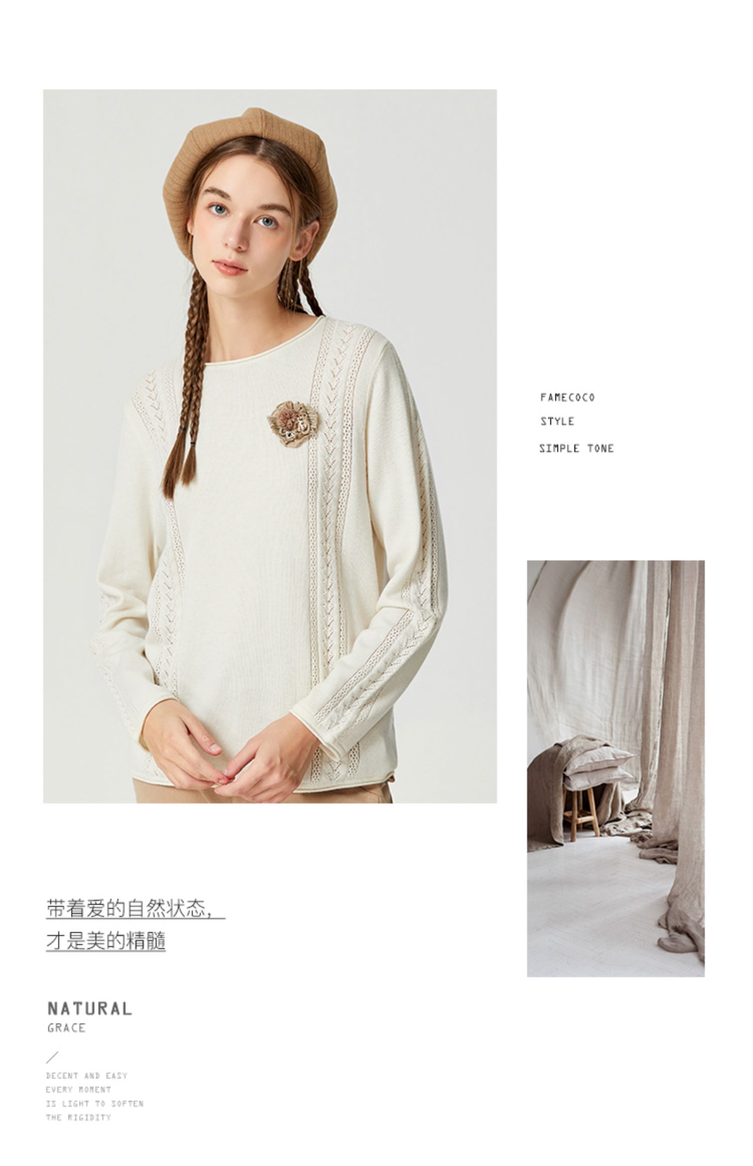 Famecoco范可儿品牌针织衫女专柜正品春秋季镂空长袖羊毛白色上衣F225DB003