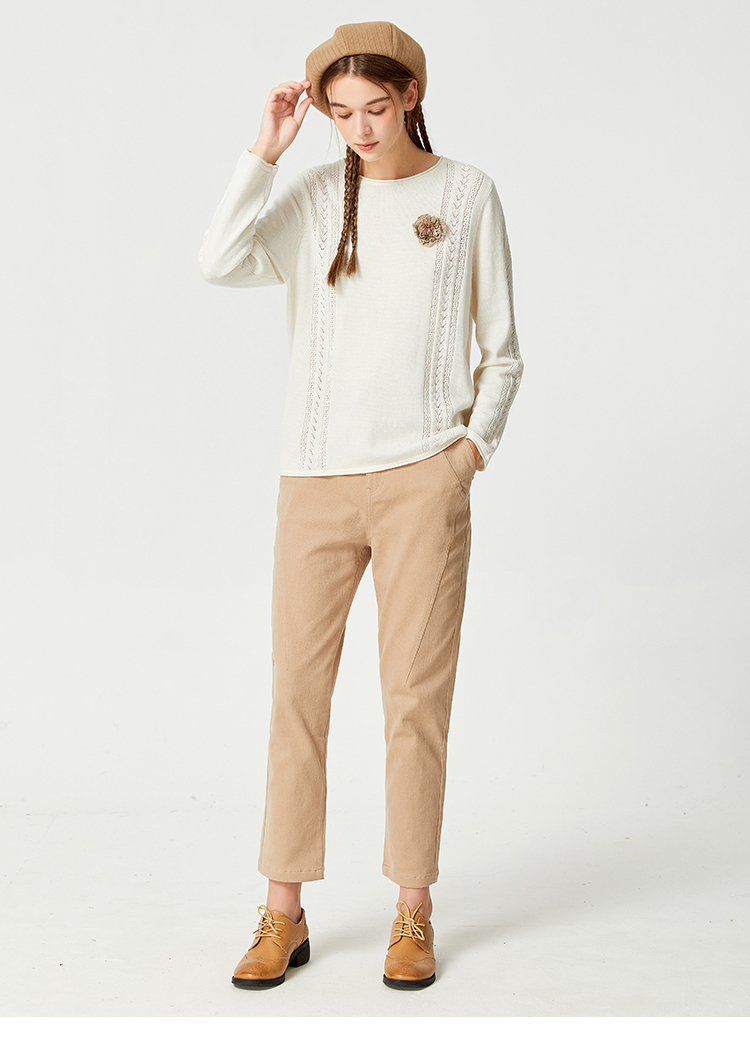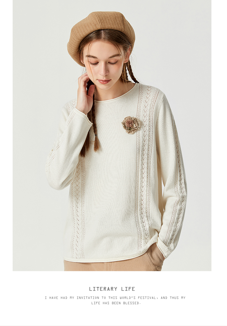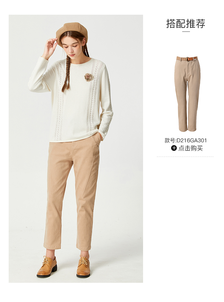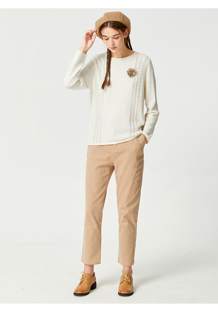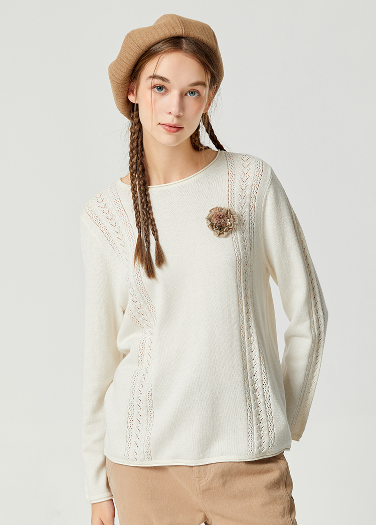 Famecoco范可儿品牌针织衫女专柜正品春秋季镂空长袖羊毛白色上衣F225DB003