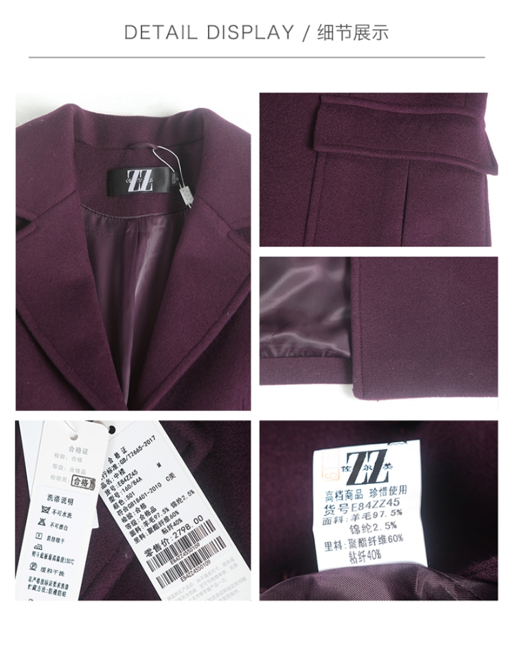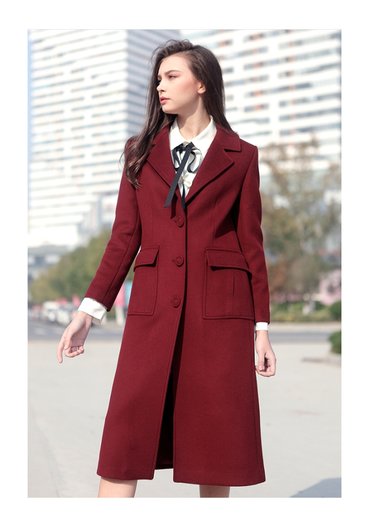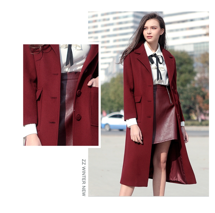佐尔美冬季女款时尚毛呢外套大衣女单排扣直筒羊毛外套E64ZD23