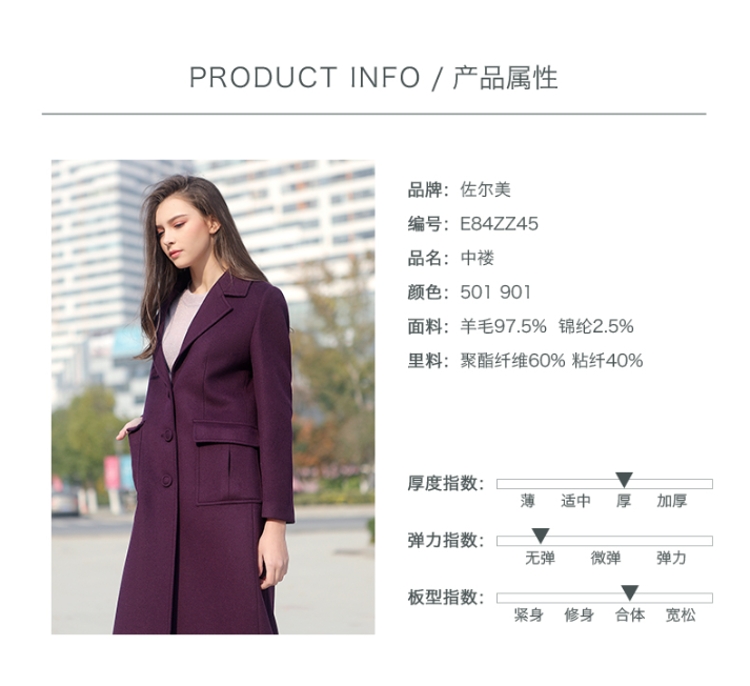 佐尔美冬季新品纯色气质休闲中老年女士过膝长款羊毛大衣E84ZZ45