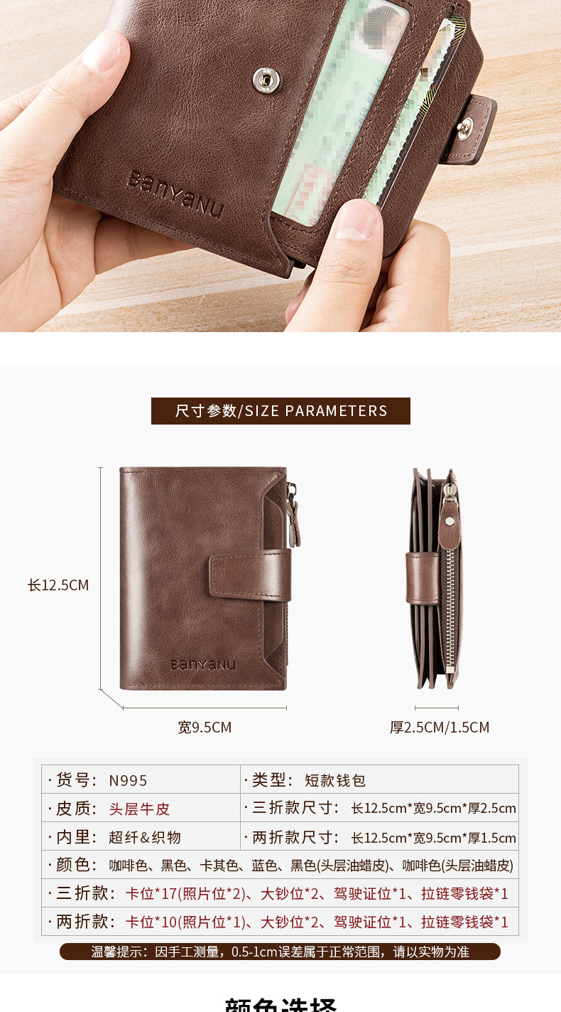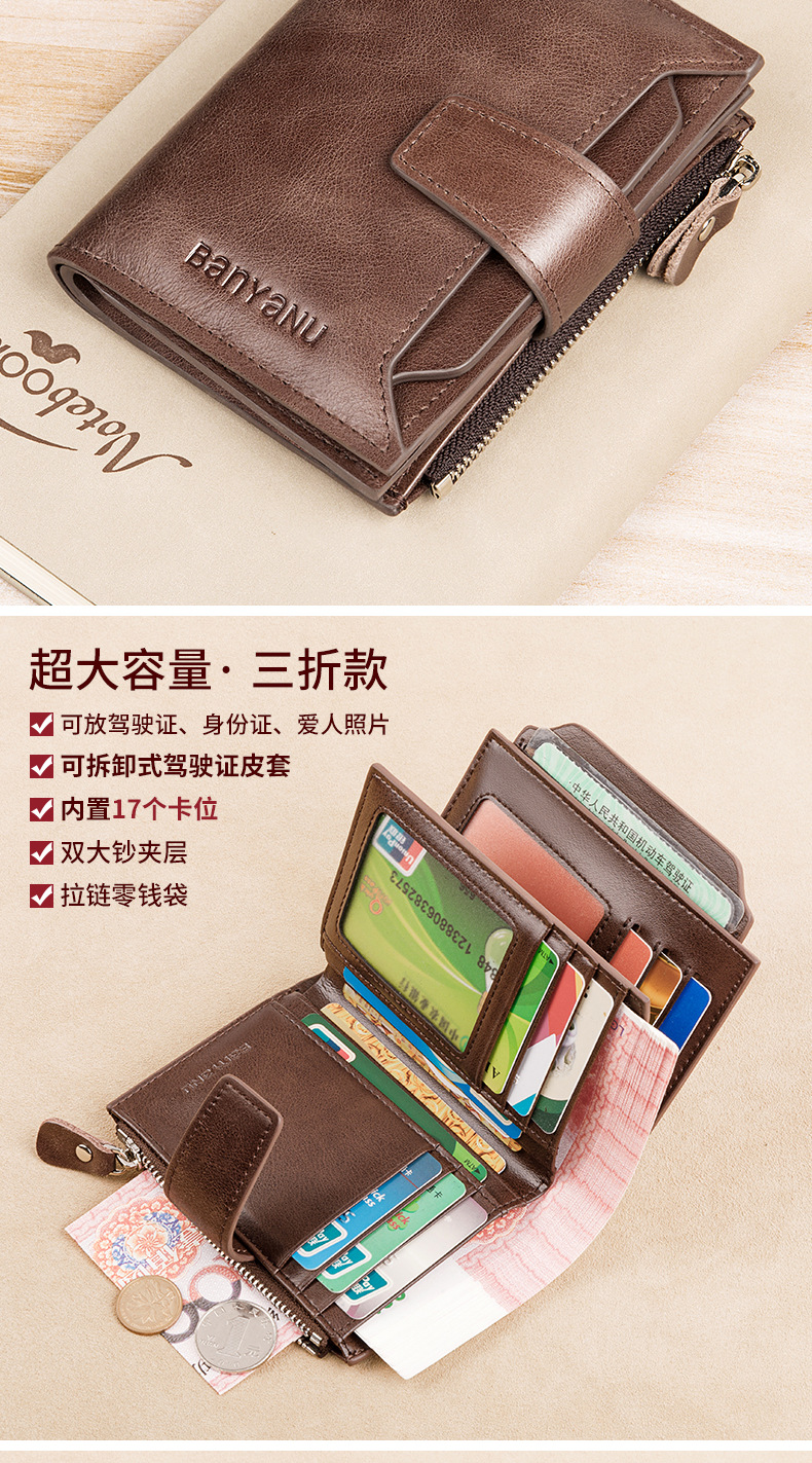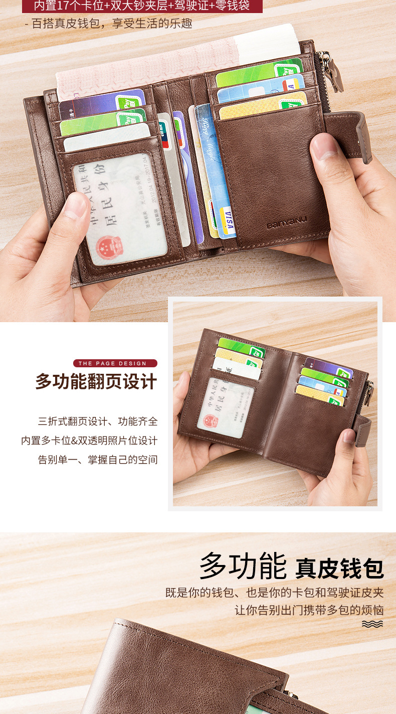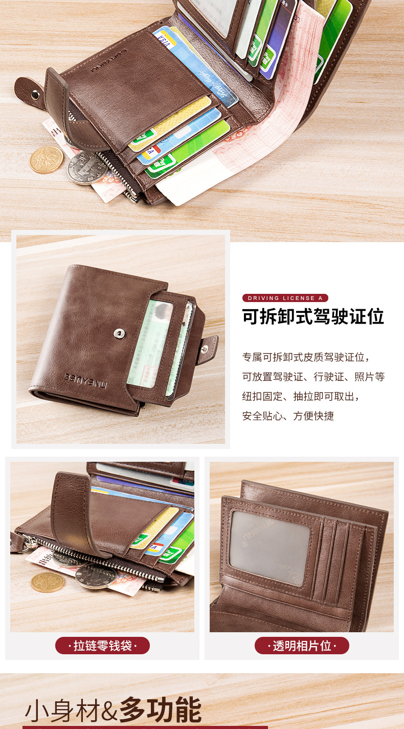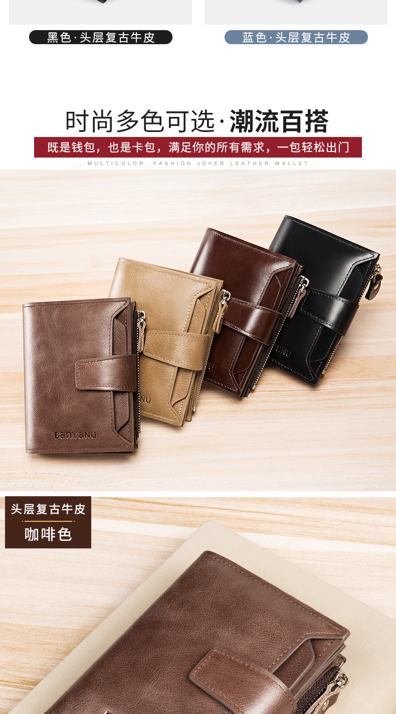 【服饰鞋包】新款复古男士钱包防盗刷短款皮男式钱夹