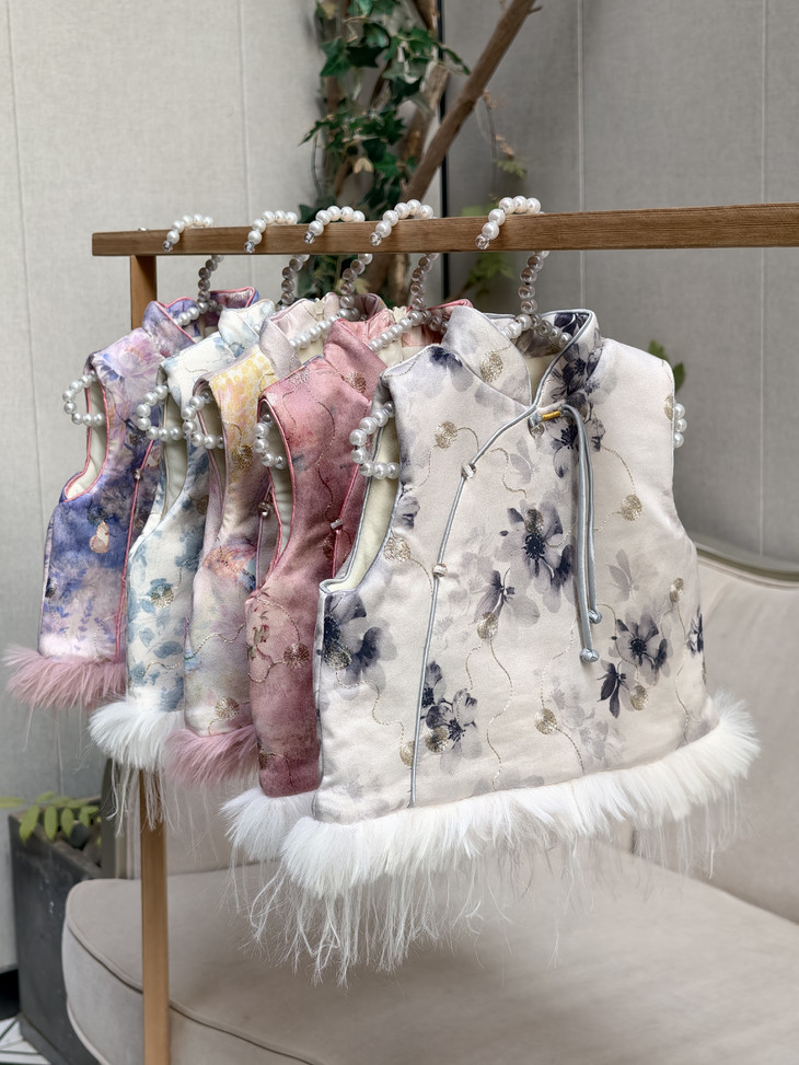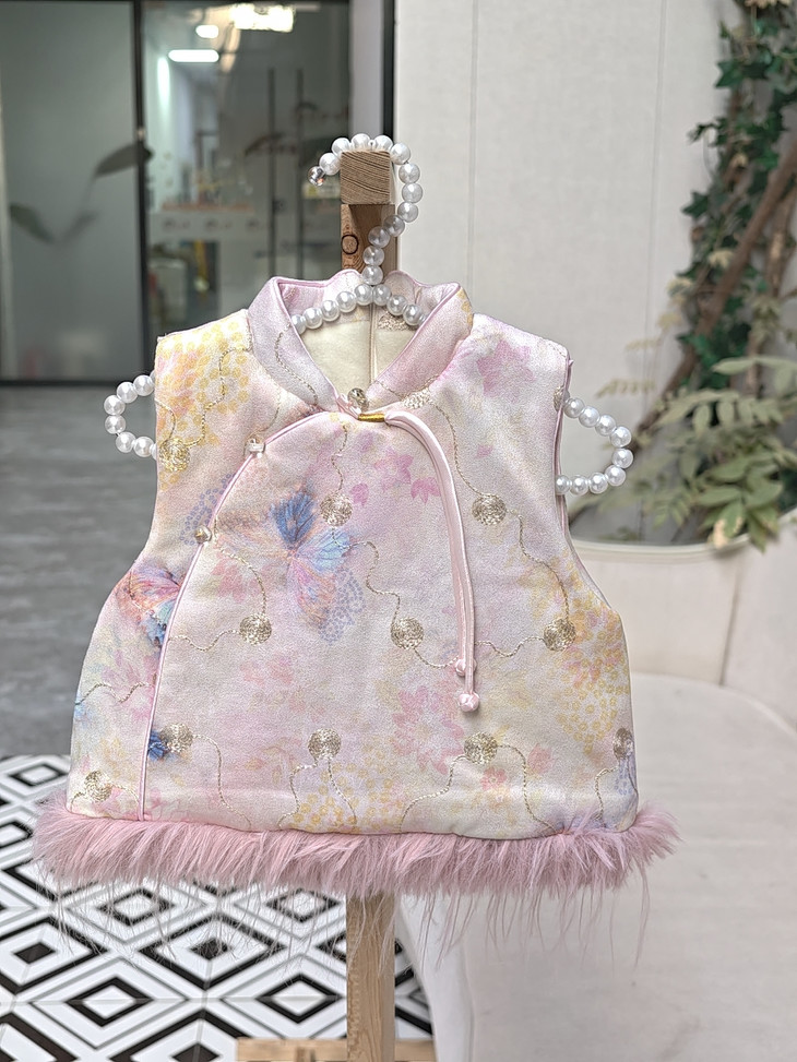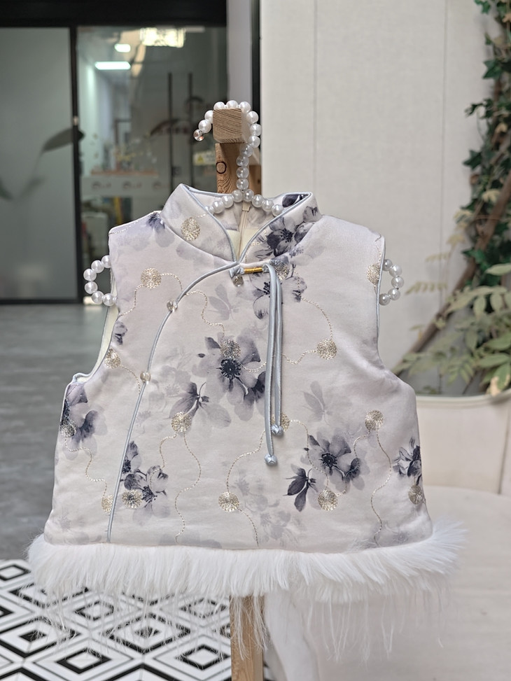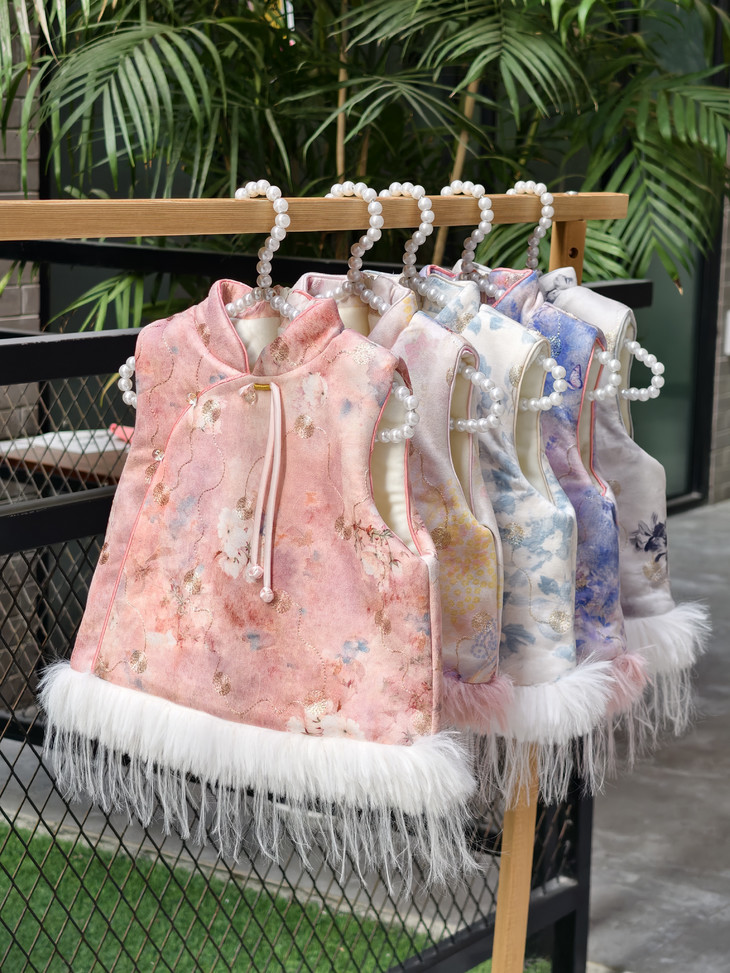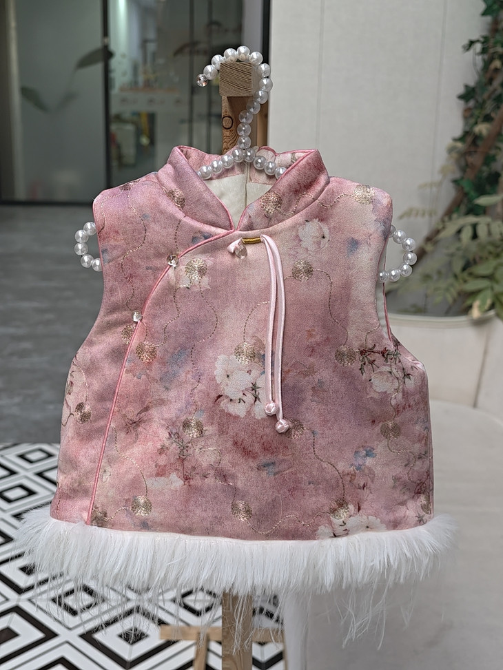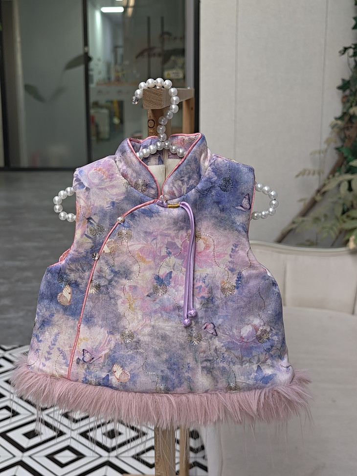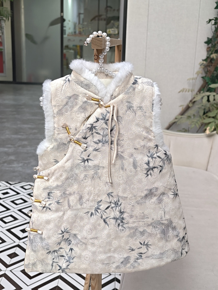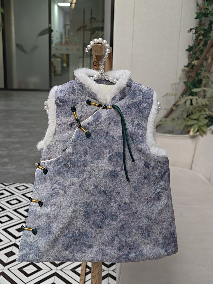 🔺这件国风马甲美到心坎里! 过年给娃穿点不一样的! 这件国风小马甲一眼就爱上了~ 水墨晕染的花色像画里走出来的 配上毛茸茸的流苏边,走路一晃一晃超可爱!