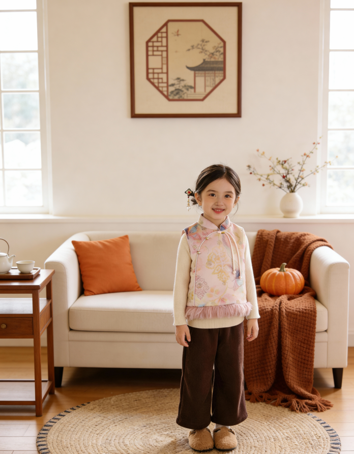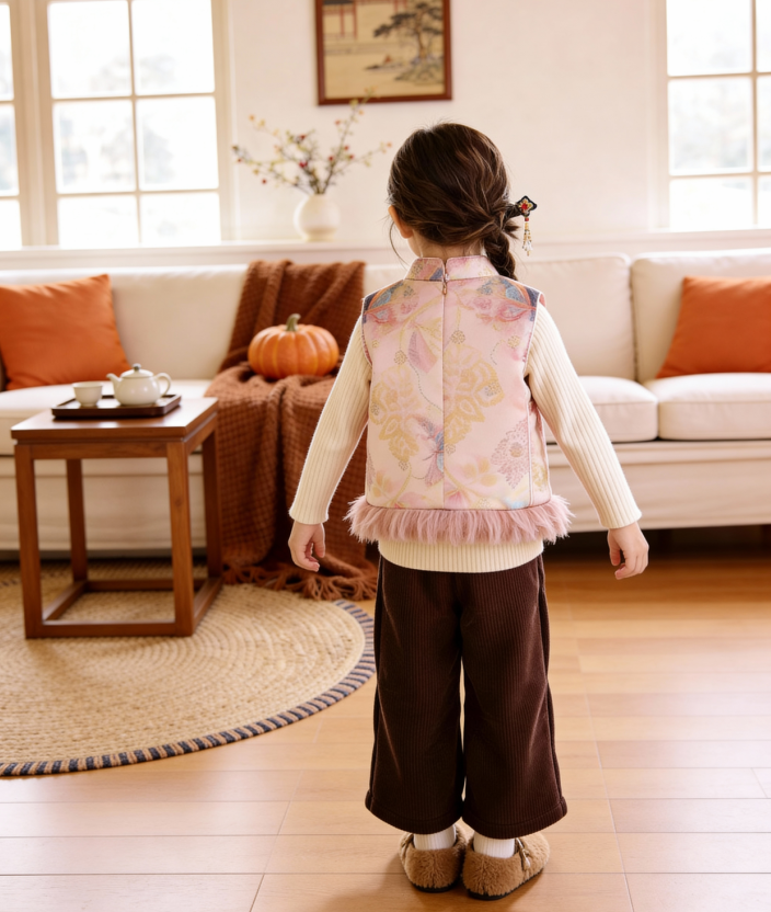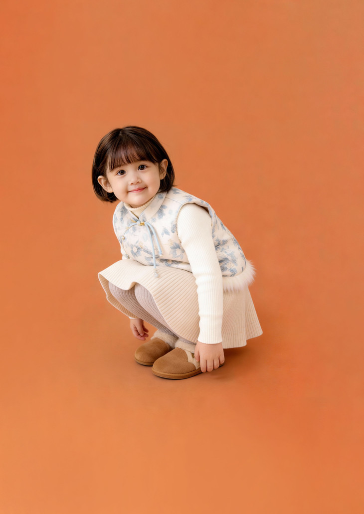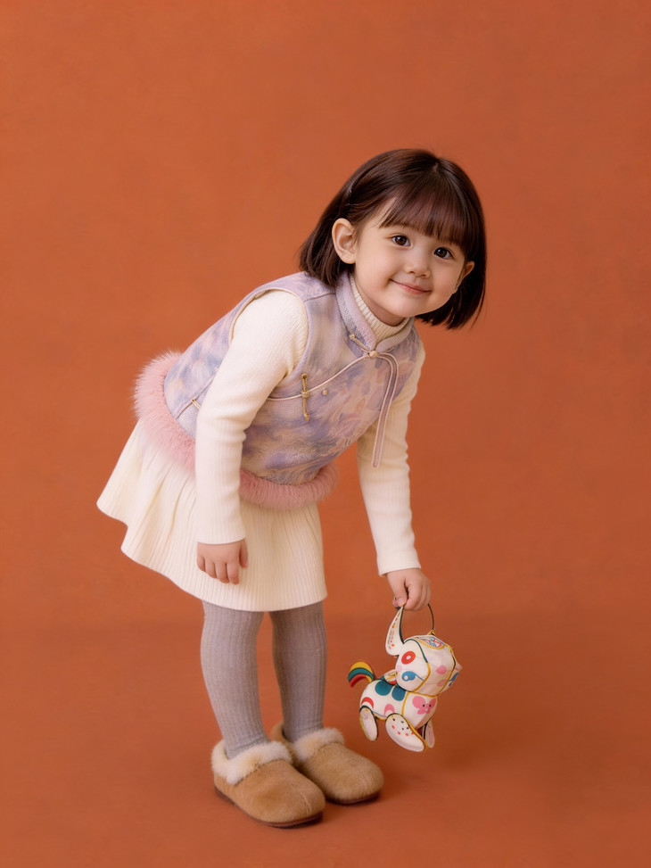 🔺还有一个隐形的优点:拍照超级出片! 过年期间,家里光线暗,人多背景乱 但这几件马甲,因为花色特别、有细节 就算在普通的家里,用手机拍,娃站在沙发前 拍出来都很有焦点,显得娃很白净、气质好 不用特意找摄影棚,年味儿和高级感都有了 发朋友圈,别人肯定问链接!