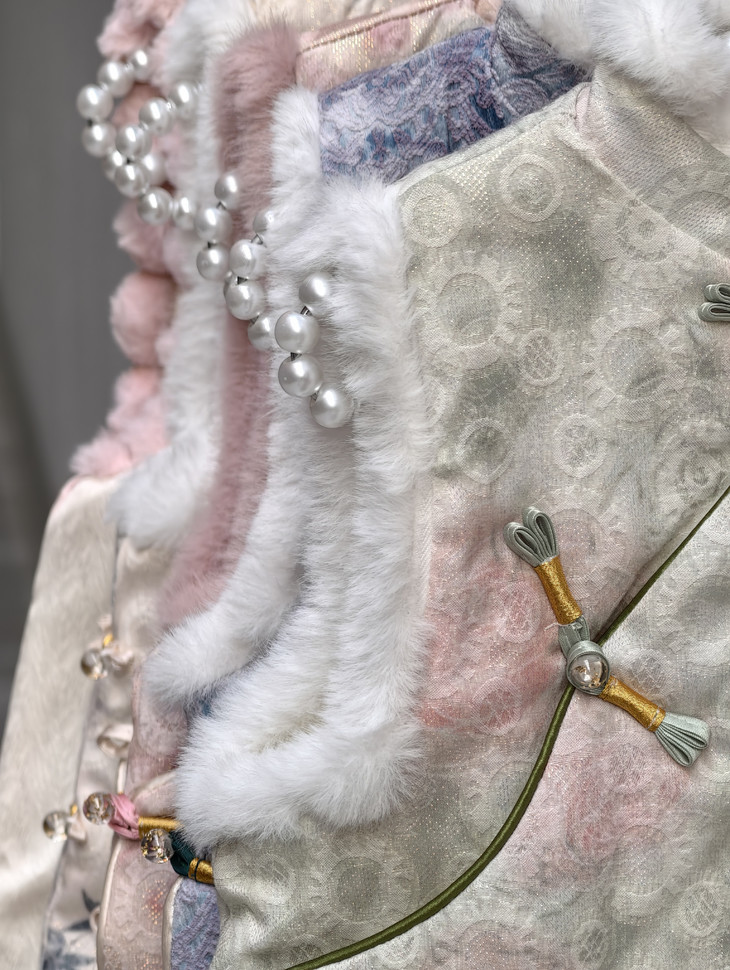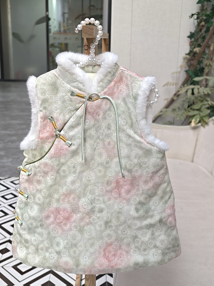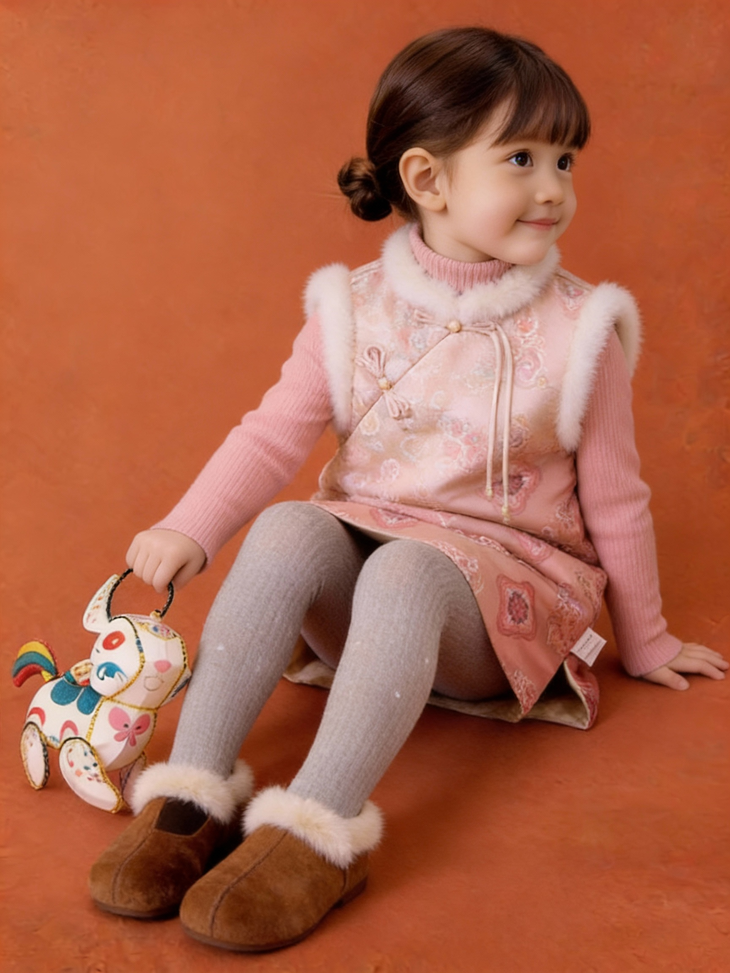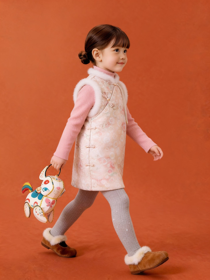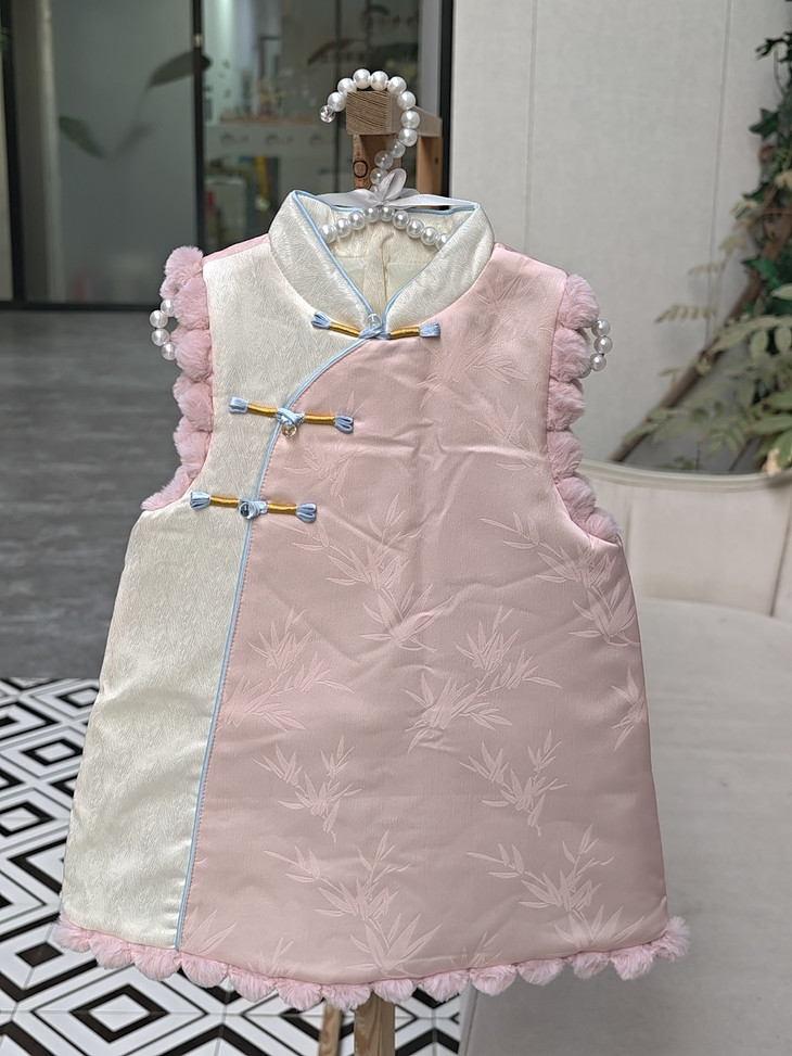 🔺裙式马甲款(懒人妈妈的福音!) ✅这是马甲和连衣裙二合一的设计,真的太省心了! ✅长度刚刚好,在膝盖上面一点 日常穿完全不会夸张 花色选择最多:粉绫、烟紫、素瓷、粉芍、青荷... 名字都很好听,都是温温柔柔的颜色。 ✅ 穿上就是完整的一套 不用再烦心怎么搭配上衣和裙子 国风氛围感直接拉满! ✅ 里面是加绒的,冬天穿不会冷 腰身那里稍微收一点,看起来很乖巧。