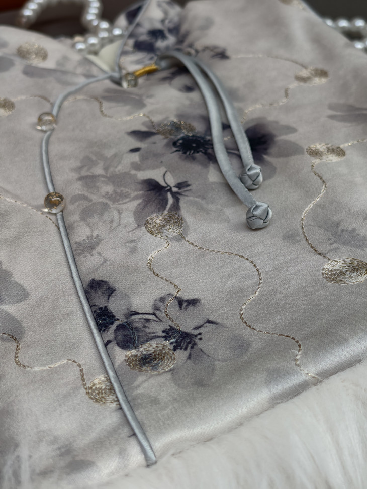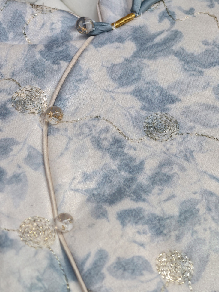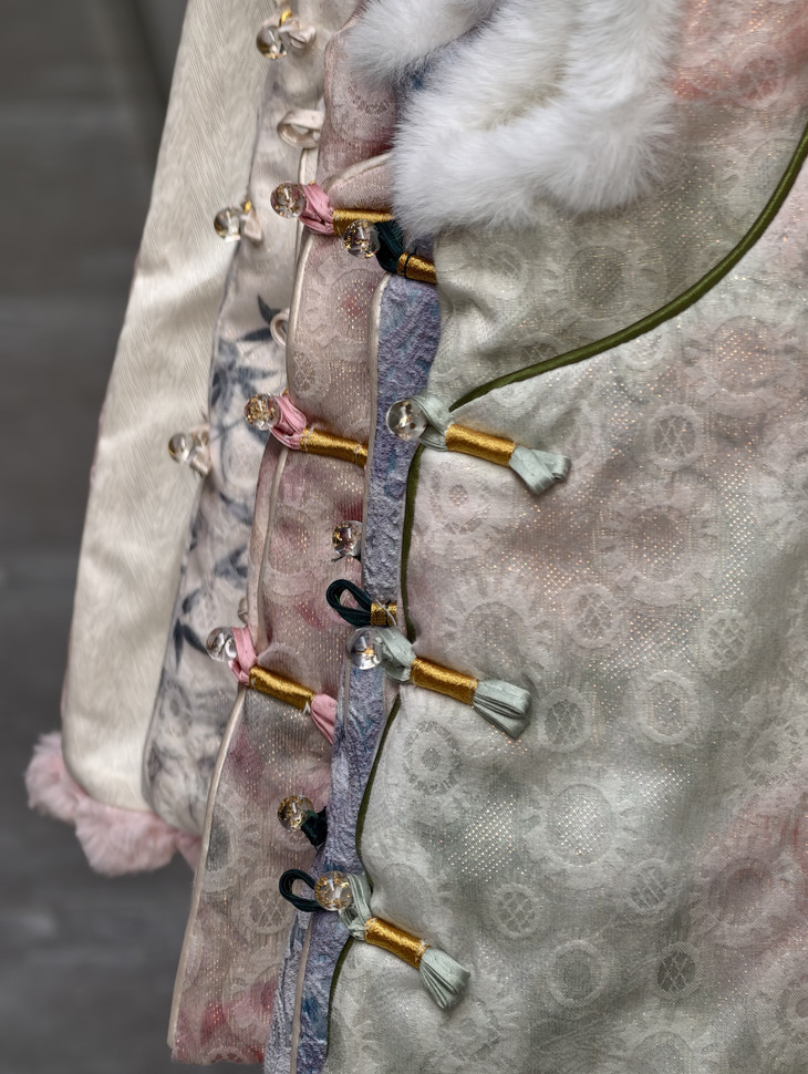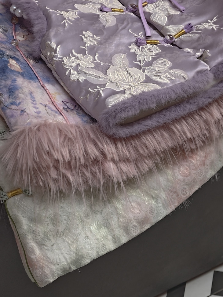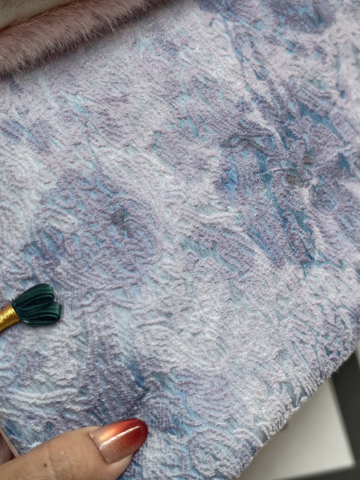 🔺晕染流苏款(我最爱这件!) ✅花色就像毛笔蘸了颜料轻轻洒上去的, 有水墨的、粉紫的、青蓝的 每一件晕染的纹路都不一样,绝对不会撞衫! ✅ 下摆和袖口有一圈软软的绒毛流苏 孩子跑起来流苏跟着轻轻晃 特别灵动,拍照好看死了! ✅ 盘扣是手工做的,小小的很精致 整体就是那种“一看就很贵”的雅致感 但实际价格超级亲民!