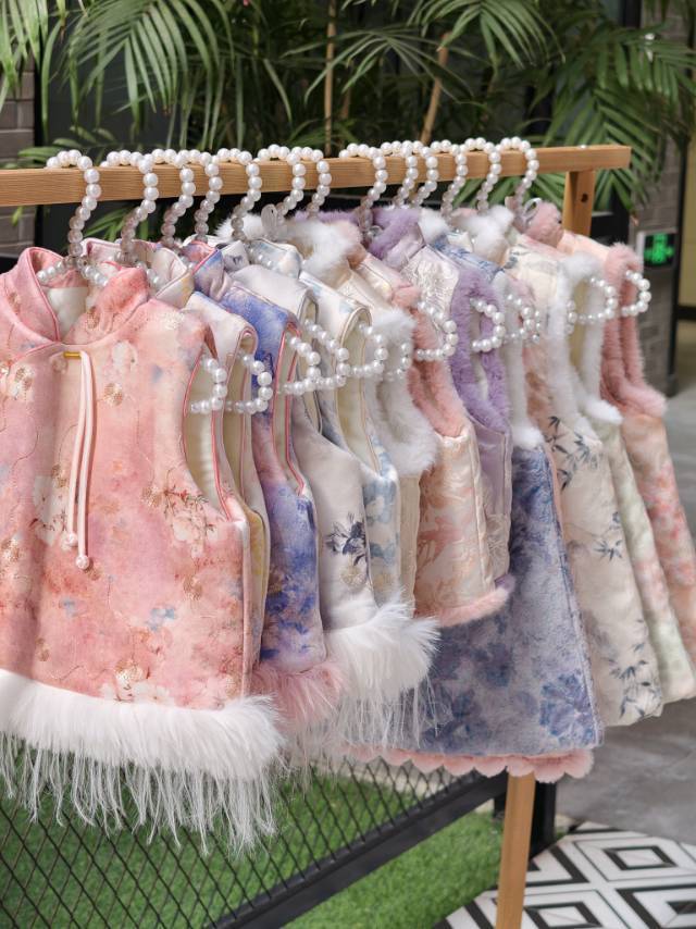 🔺比某姆便宜一大半! 说实话,商场里随便一件有点设计的童装 都要一两百,网上有些便宜的,质量你们懂的... 咱们这次是直接和工厂谈的: 晕染流苏款:69💰 织纹盘扣款:79💰 裙式马甲款:99💰 全部包邮⚠️
