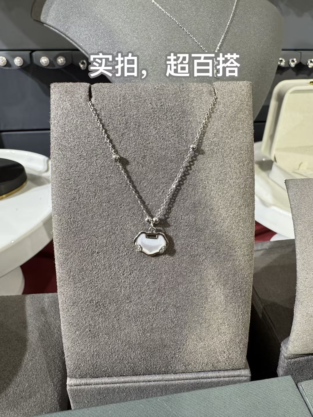 复古白贝母平安锁吊坠项链纪念日百货门店同款162264084