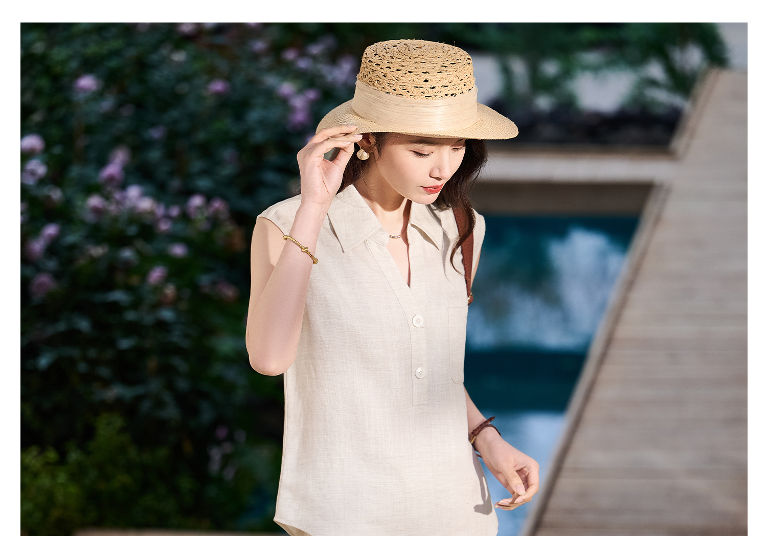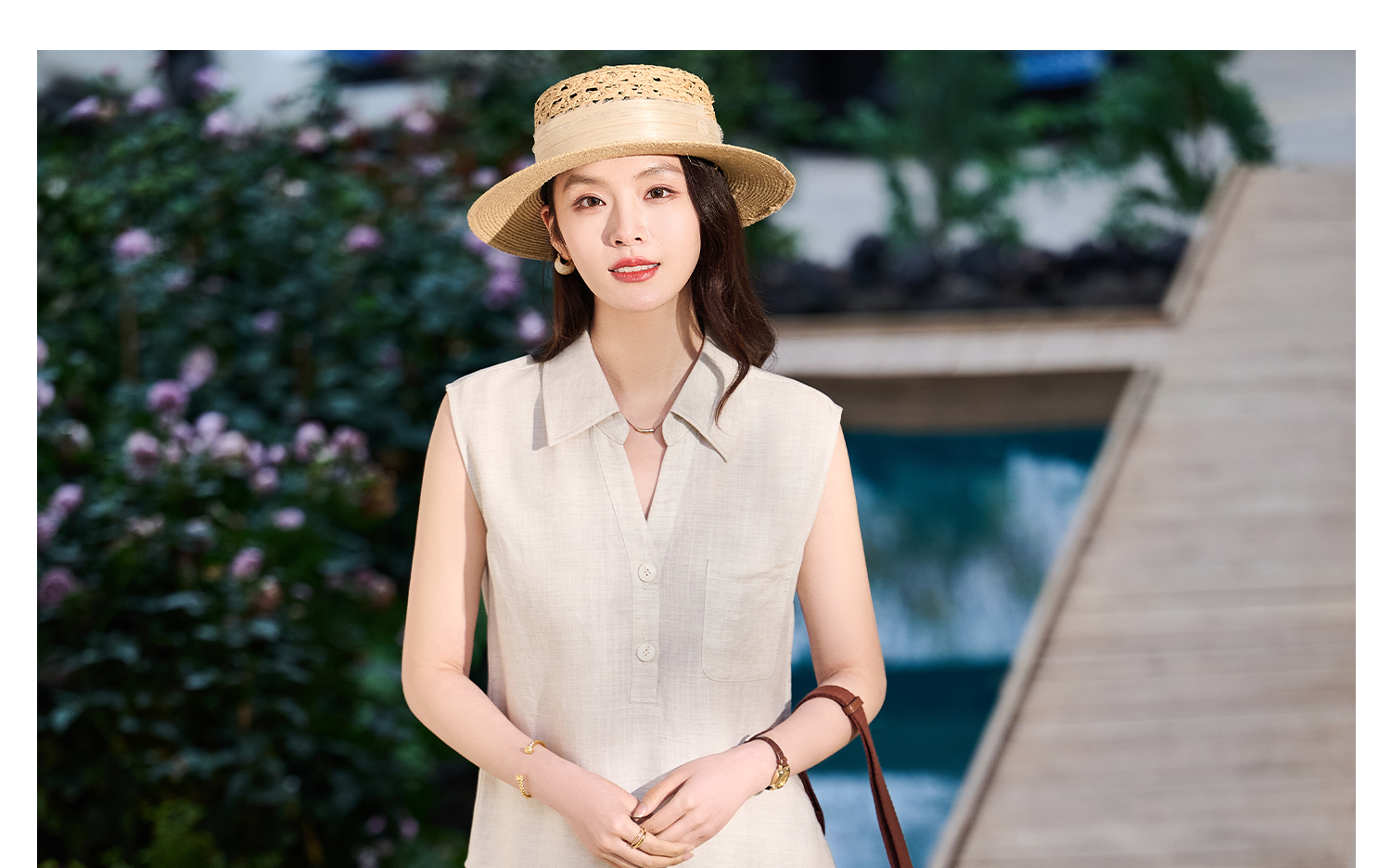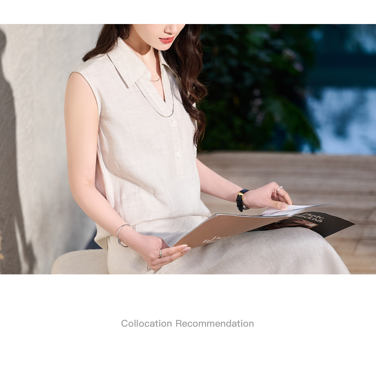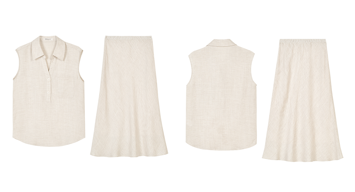 老钱风天丝亚麻套装 米思阳2026夏新品高级感优雅无袖衬衫半身裙两件套女时尚套装6135