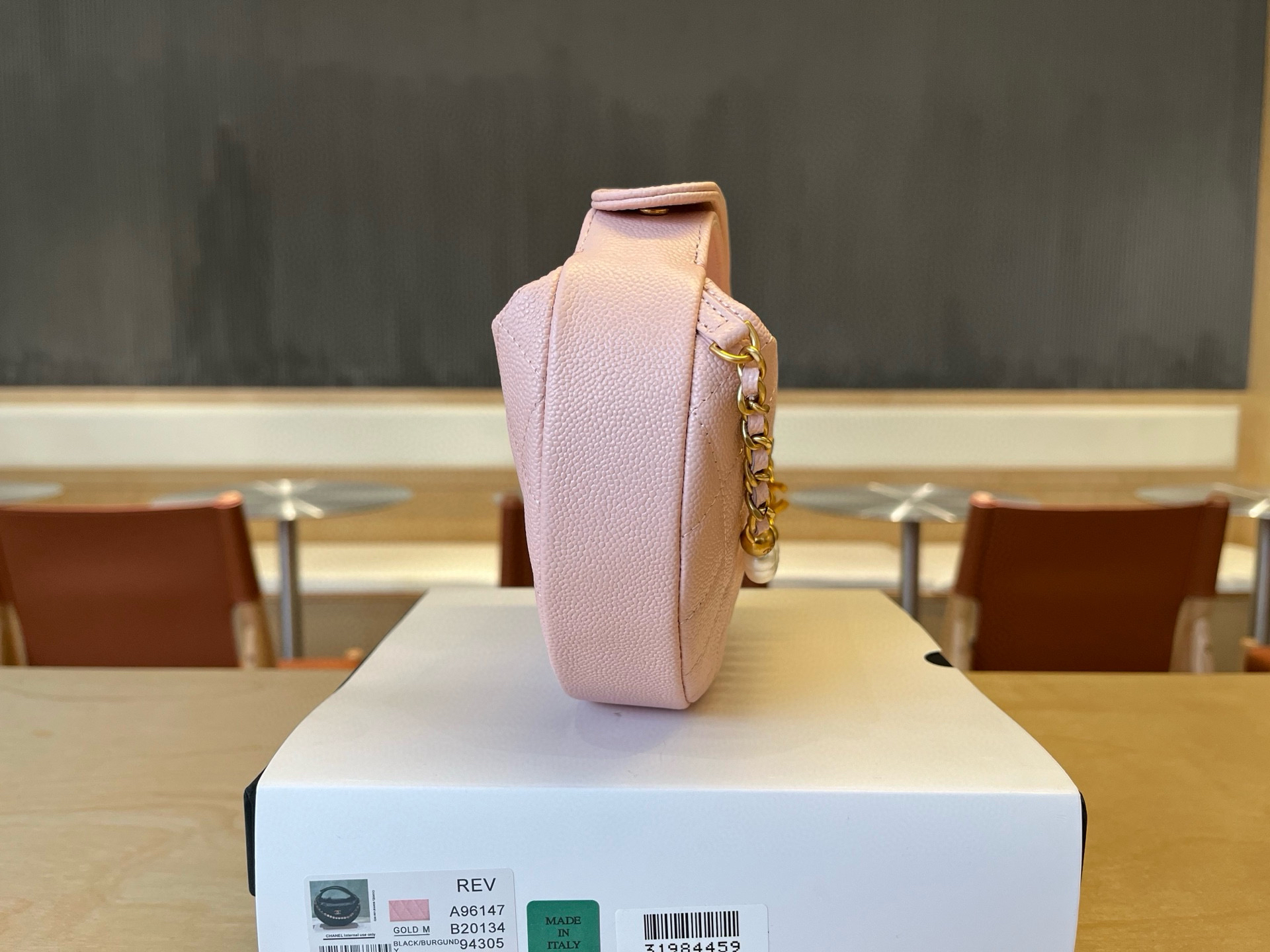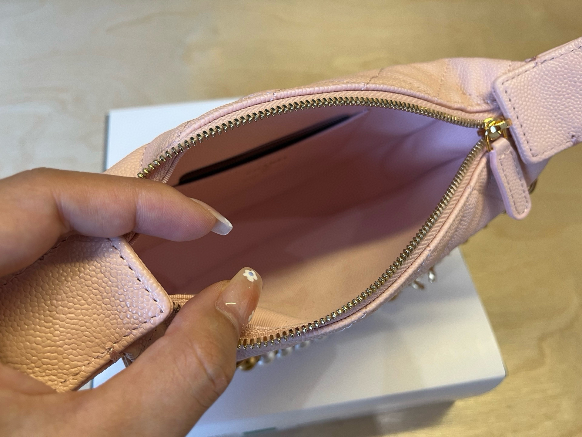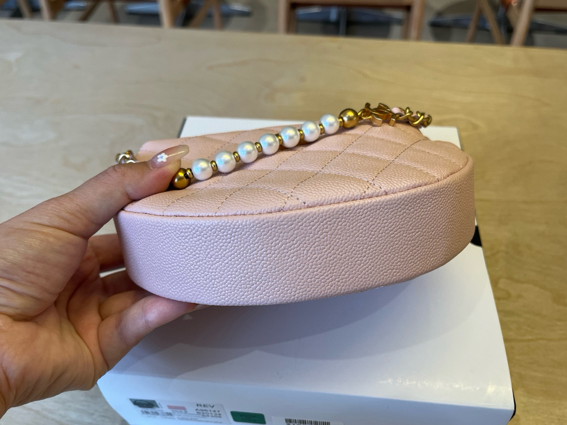 夏季特惠💰980 原单香奈儿A96147 25s珍珠链条呼啦圈包!这一季的炸街王炸单品终于来了!月牙包身配复古呼啦圈造型,拎手上直接贵气值拉满!链条上7颗珍珠blingbling的,阳光下闪到挪不开眼~球纹牛皮自带高光滤镜,菱格走线超工整,双C logo一整个大写的"姐很高贵"!手腕上的磁吸扣开合超丝滑!手提变腋下?不存在!就是要你优雅slay全场!包包看着娇小但巨能装!手机粉饼口红通通塞得下,真不是只能装可爱的小废包,单拎是C位焦点,挂在大包上当配饰更是点睛之笔,出街直接被要链接!拎着走随便抓拍都是杂志封面,闺蜜聚会合照永远站C位,朋友圈九宫格根本不够发!