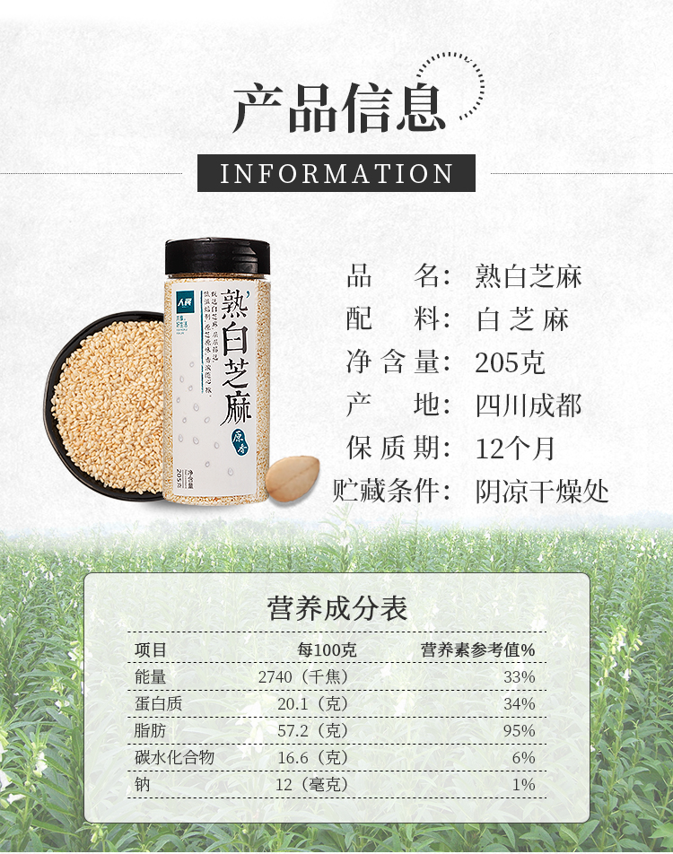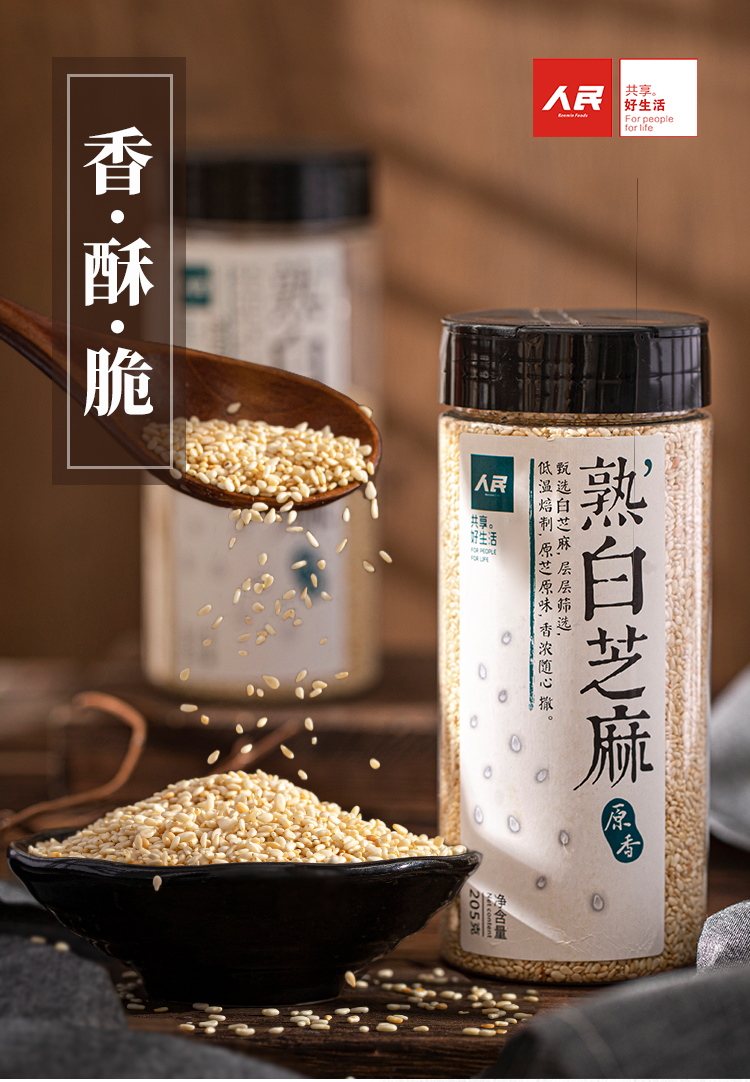 人民瓶装蝴蝶盖熟白芝麻205g